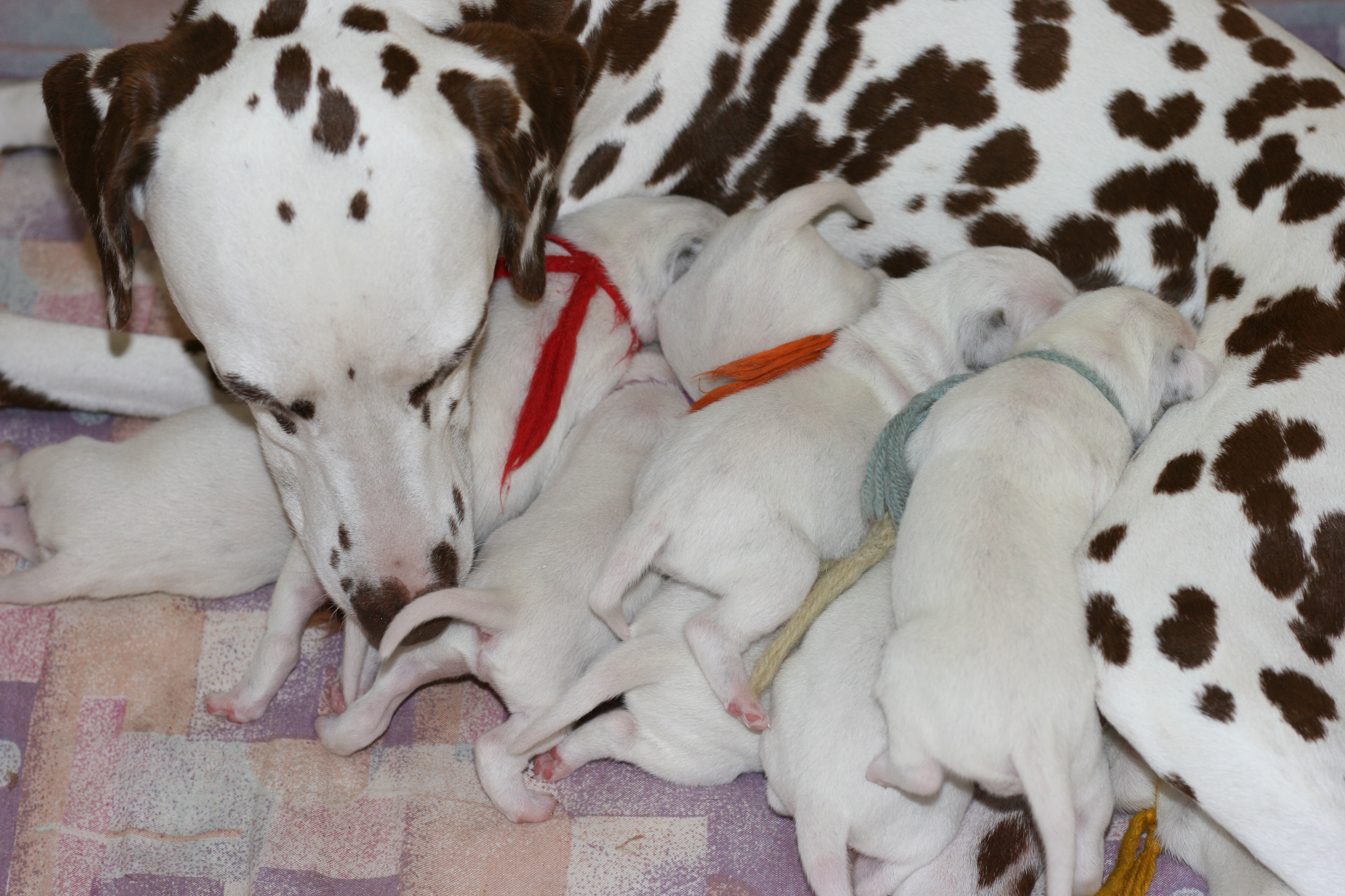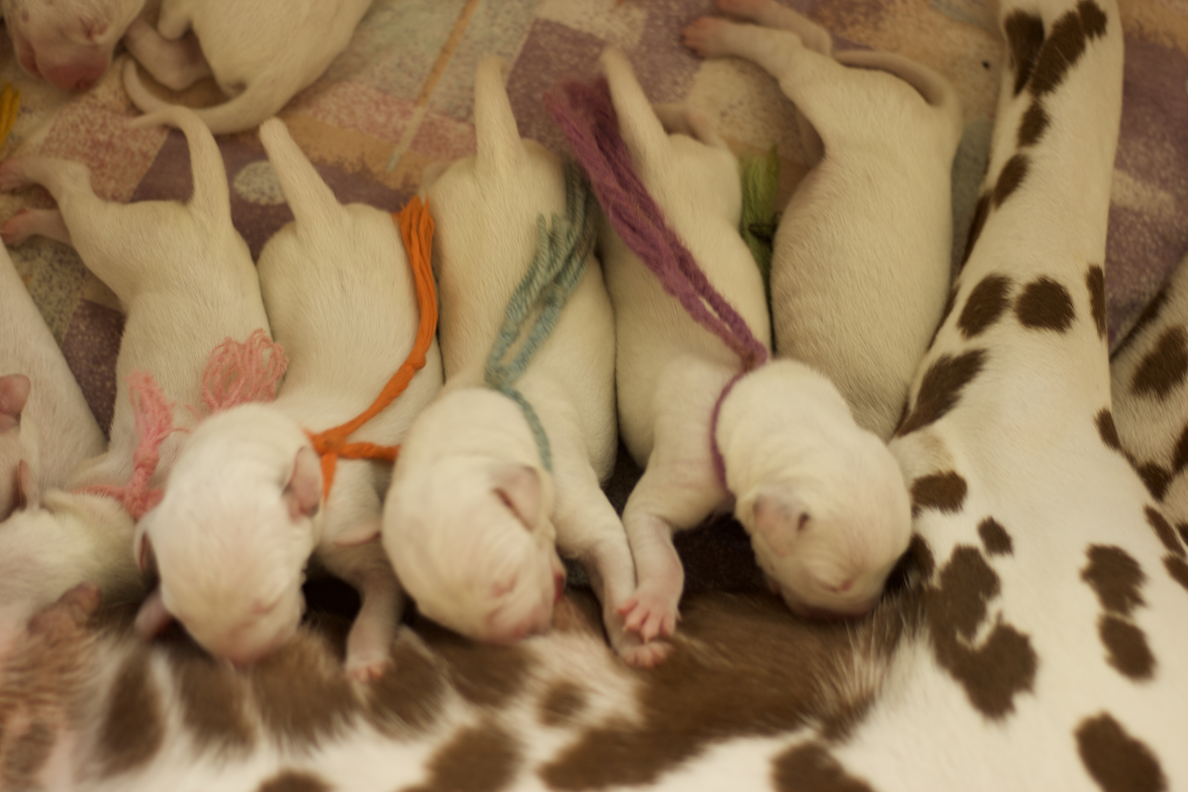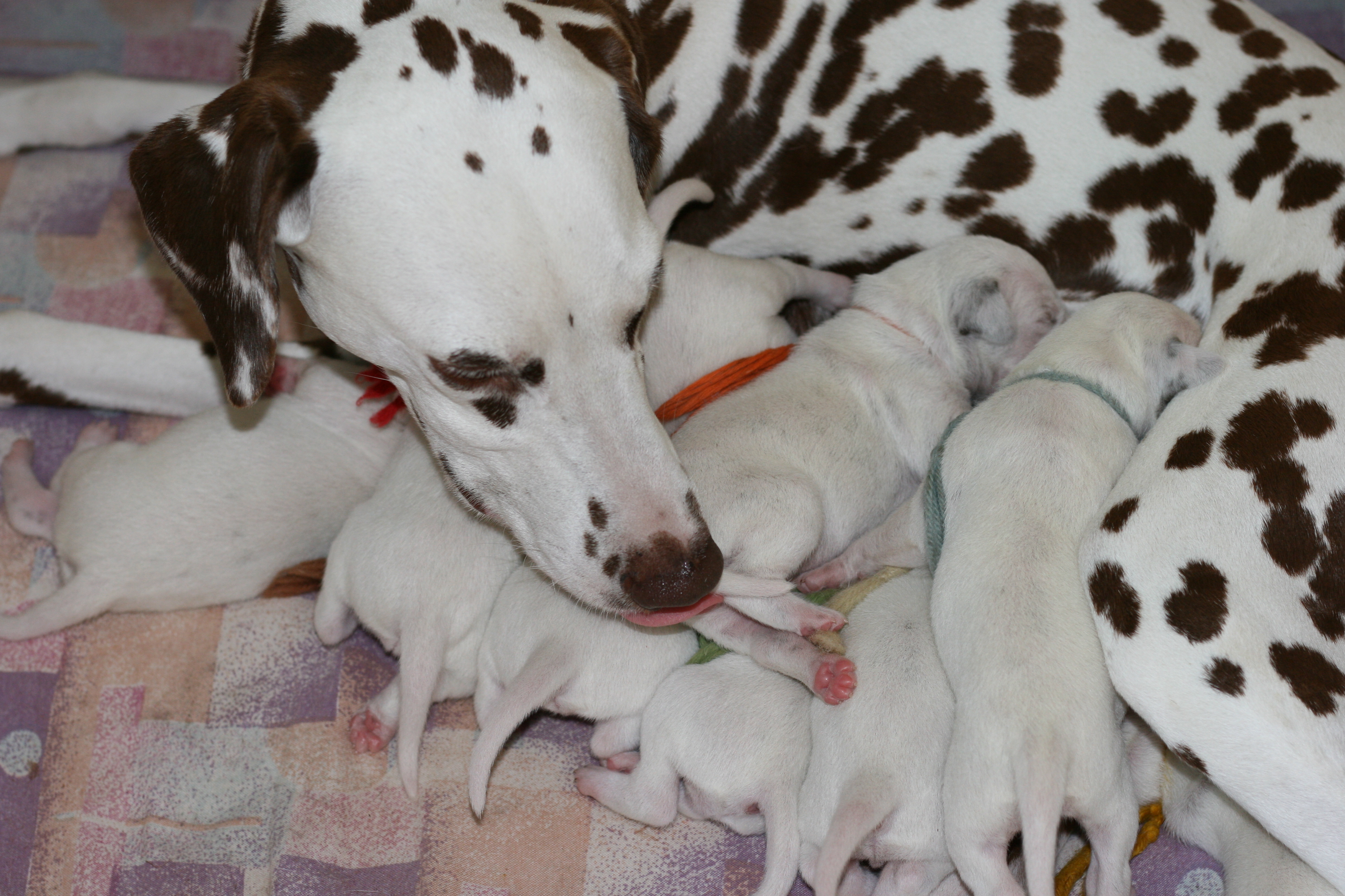 Die erste Lebenswoche geht jetzt ihrem Ende zu. Es ist ein Wahnsinn wie schnell sie verflogen ist. Wir sind ständig auf der Suche nach dem besten Platz an der Milchbar. Zum Glück hat unsere Mama 10 Zitzen und so können wir alle gleichzeitig dran. Wir haben aber auch schon gemerkt, dass das gar nicht so sinnvoll ist und sind jetzt meistens in 4er und 5er Gruppen am Start. Aber wenn der Hunger bei uns allen gleichzeitig kommt, müssen wir alle an die Milchbar. Unsere Mama kümmert sich mit großer Hingabe um uns auch wenn wir es gar nicht immer so toll finden, denn nach dem Essen wollen wir am liebsten gleich schlafen aber wie ihr alle wisst, muss man sich vor dem zu Bett gehen waschen und darauf achtet sie genau. Danach rollen oder robben wir uns an eine andere Stelle zum kuscheln und schlafen und das ist immer herrlich. Bis das Ganze wieder von Vorne losgeht.