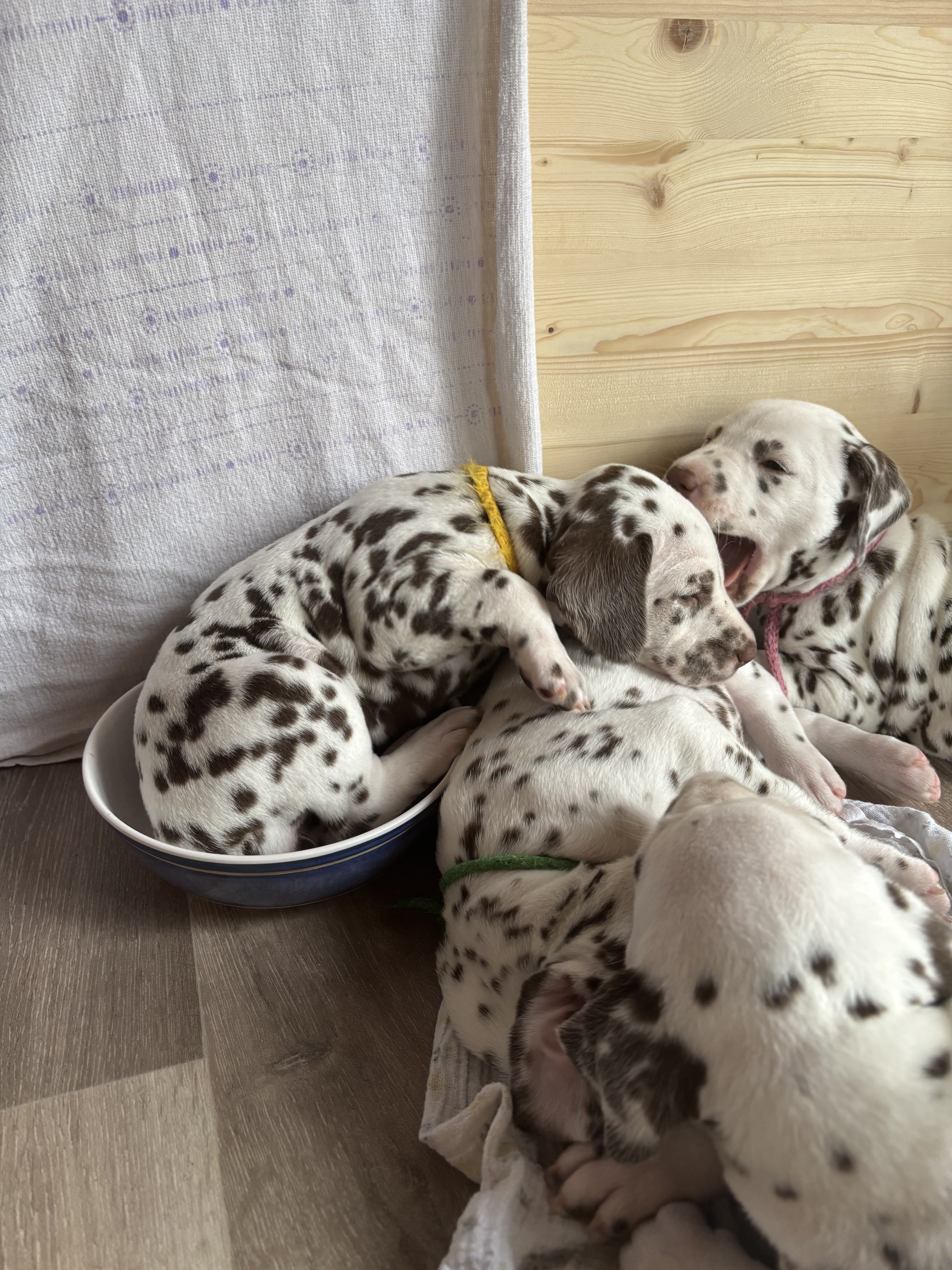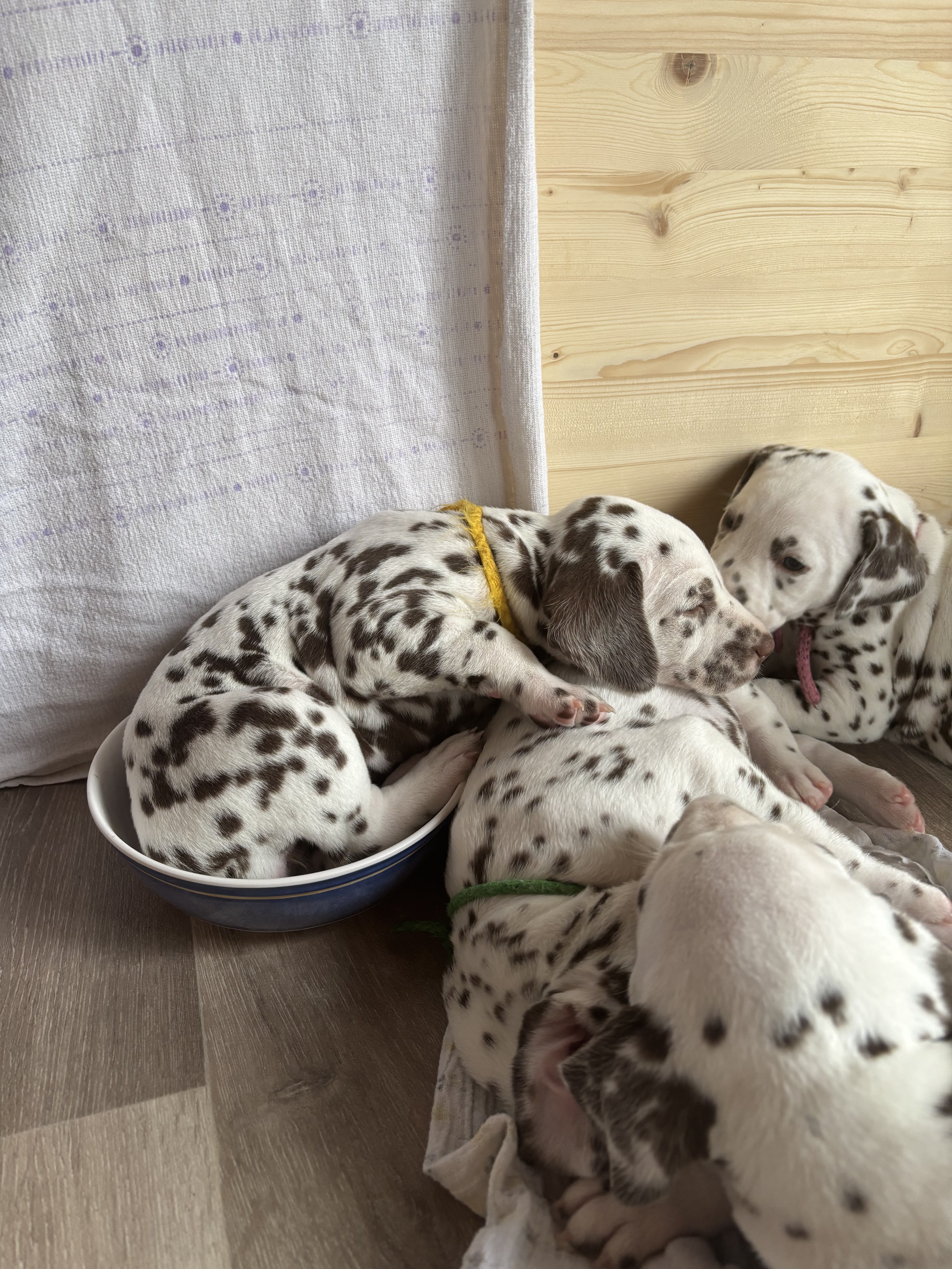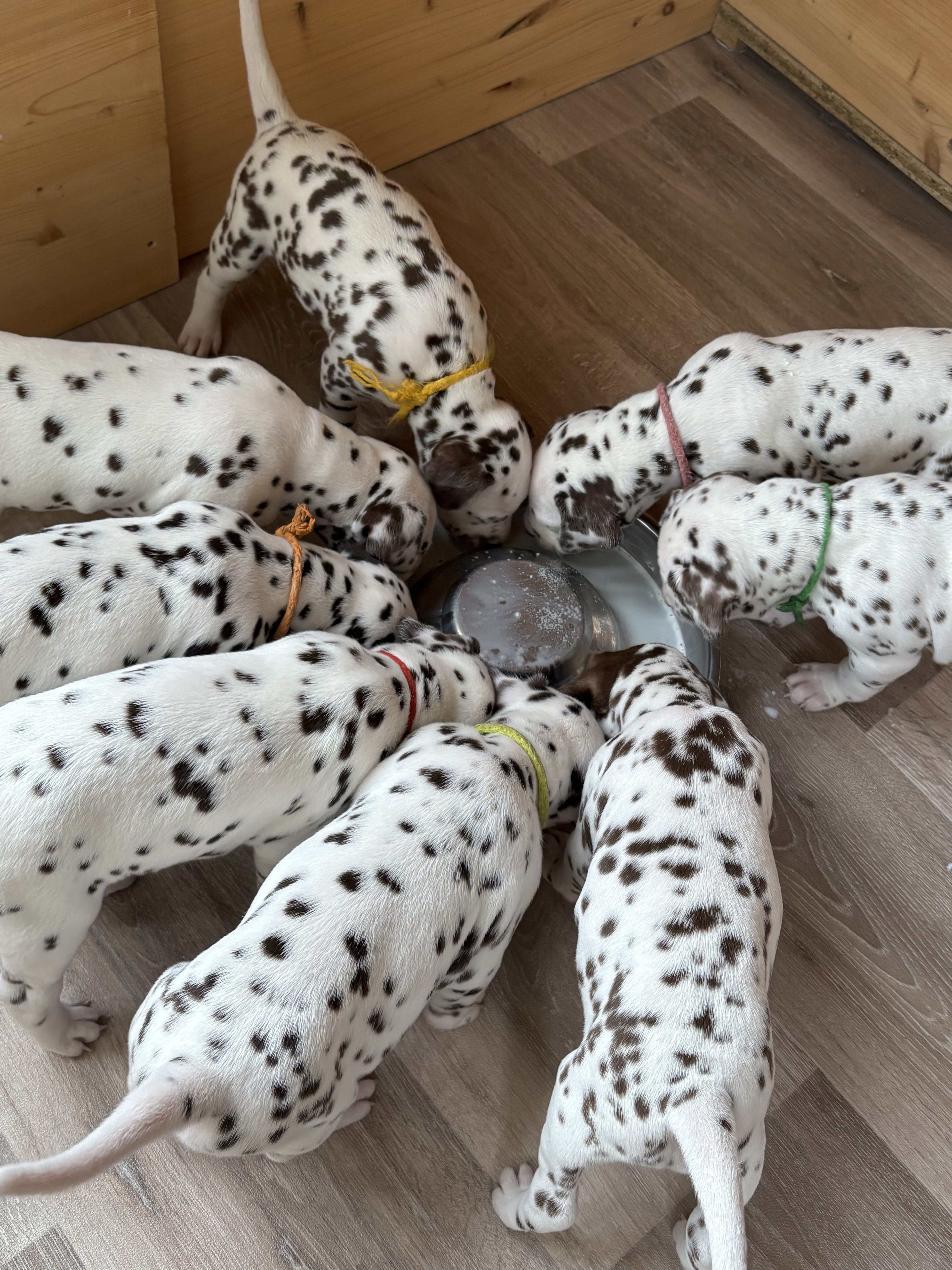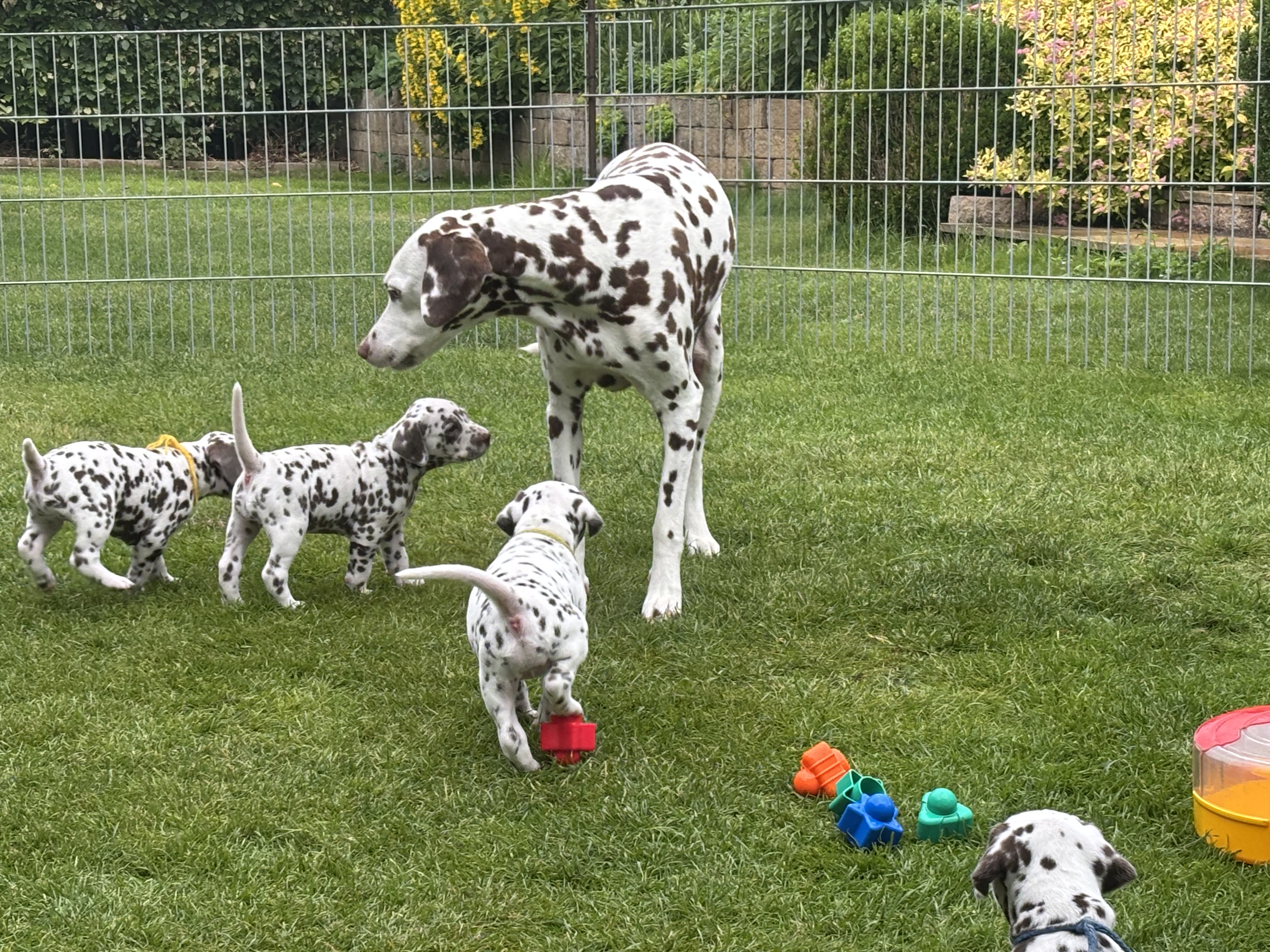 Wir sind jetzt 4 1/2 Wochen alt sind und richtig gut zu Fuss unterwegs. Unsere Welt ist seit diesem Wochenende viel größer geworden, aber das ist auch gut so. So können wir viel besser mit Mama und Oma toben und es gibt so viel zu entdecken. Das erste Gewitter haben auch schon miterlebt und es hat uns überhaupt nicht gestört. Wir waren total gechillt. Die zweite Wurmkur haben wir auch hinter uns gebracht und es war gar nicht so schlimm. Aber jetzt genug der Worte schaut Euch unsere Fotos an. Was sagt Ihr? Wir sind ganz schön gewachsen. Oder?