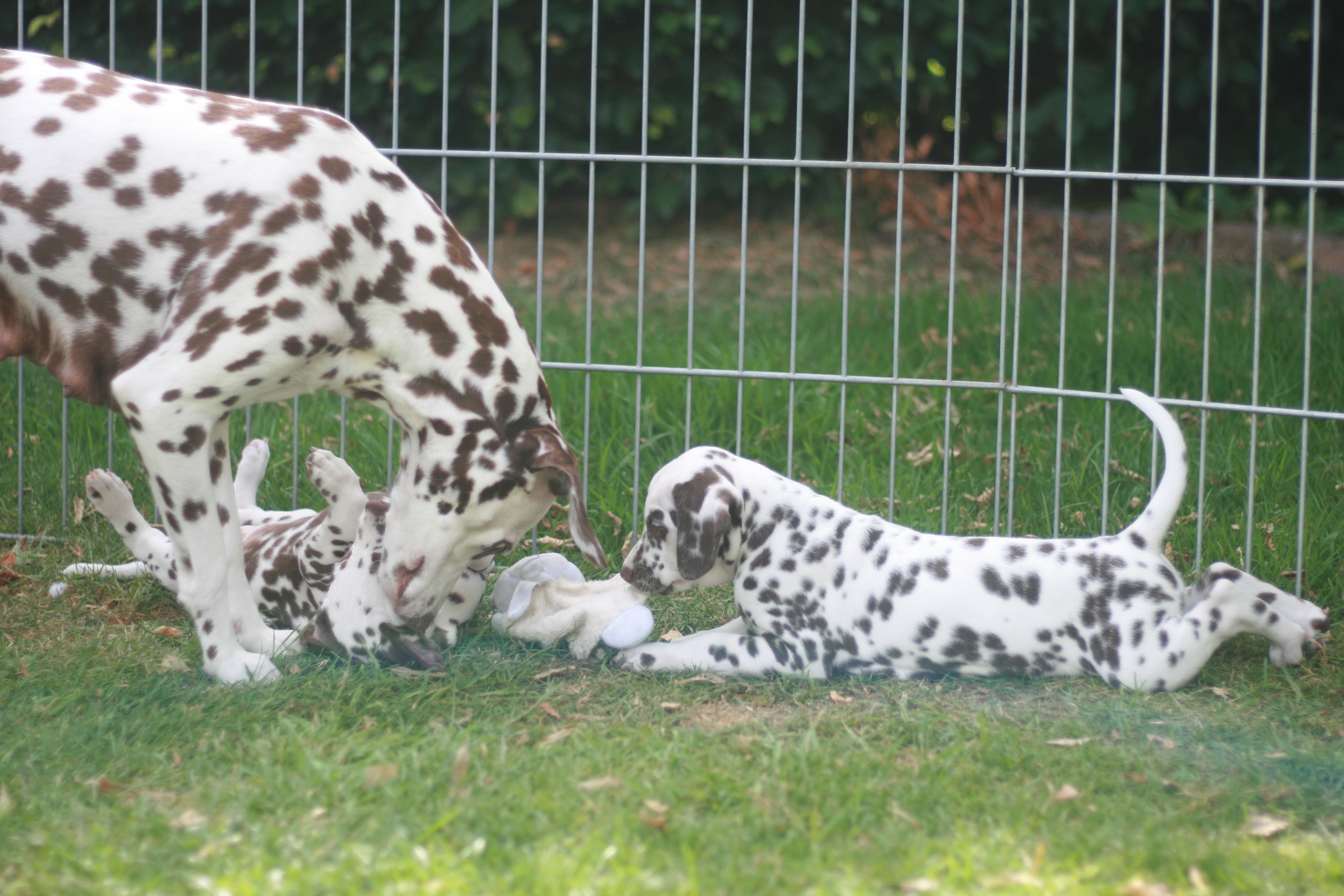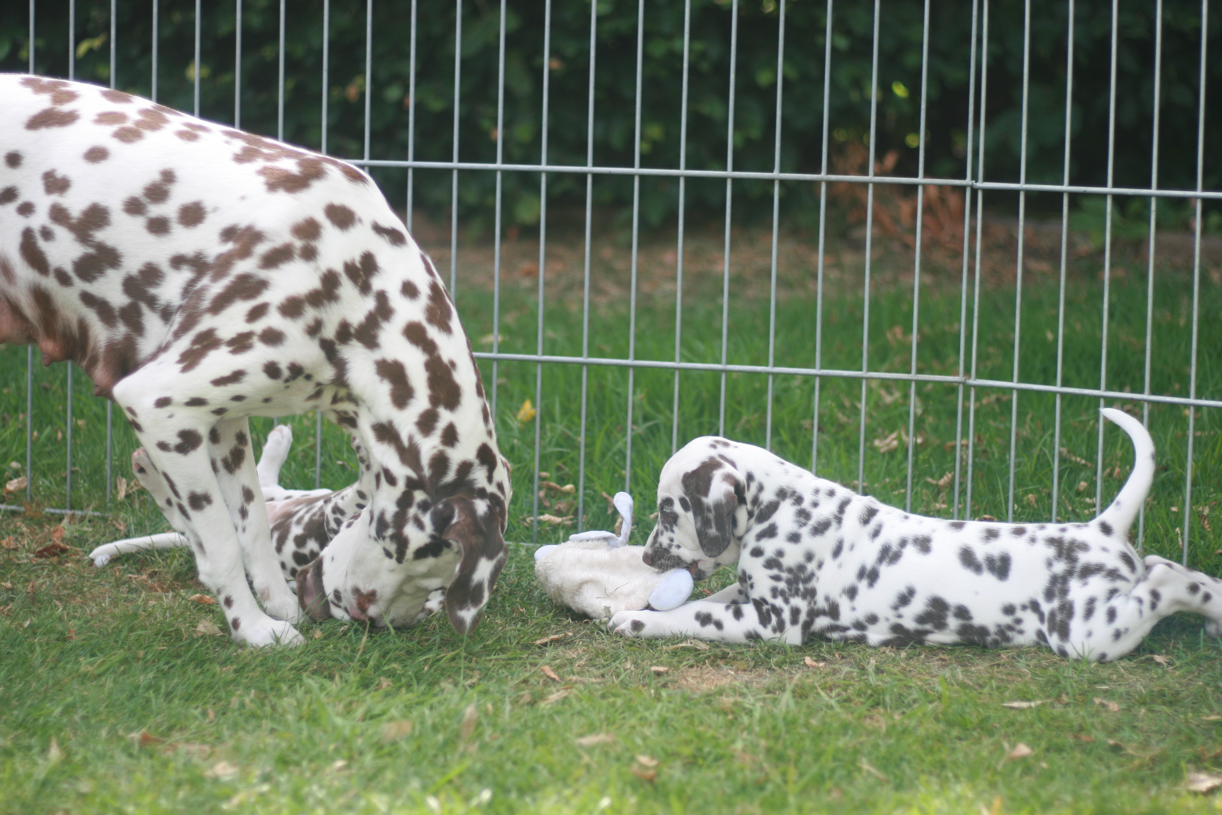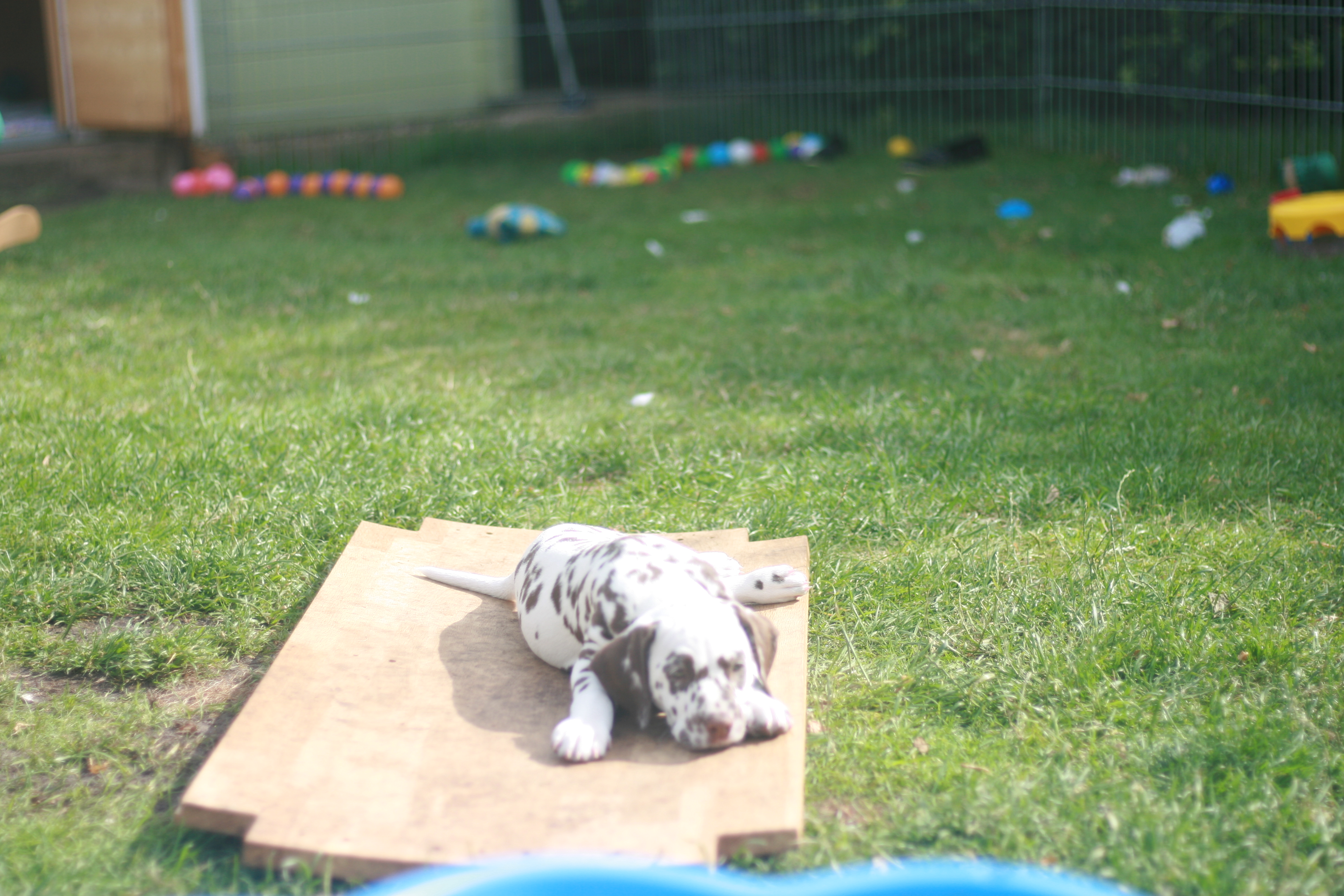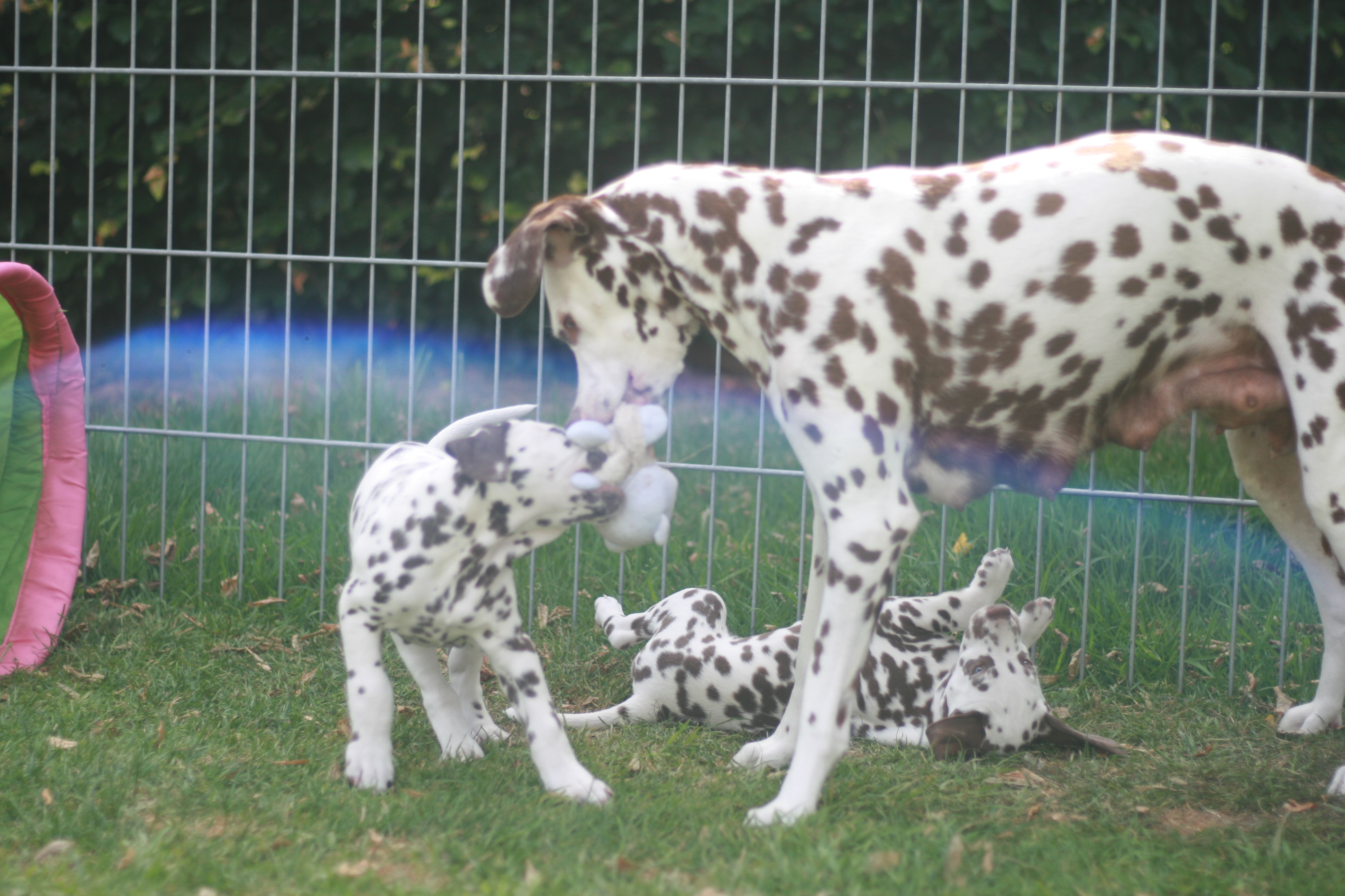 In den anstehenden Tagen kommt auch noch unsere Tierärztin Dr. Ilona Duda zu Besuch und überprüft, ob alles mit uns okay ist und wir bekommen unsere erste Impfung. Am Samstag kommt dann auch noch unsere Zuchtwartin vorbei und wenn diese Termine alle durch sind, packen wir unsere Köfferchen. Unsere Ziehmama wird so langsam traurig aber sie weiß, dass es wichtig für uns ist, dass wir unsere Familien bekommen. Eine von uns Mädels darf aber auch hier bleiben. Es wird noch nicht verraten, wer es sein wird. Da dürft Ihr gespannt sein.