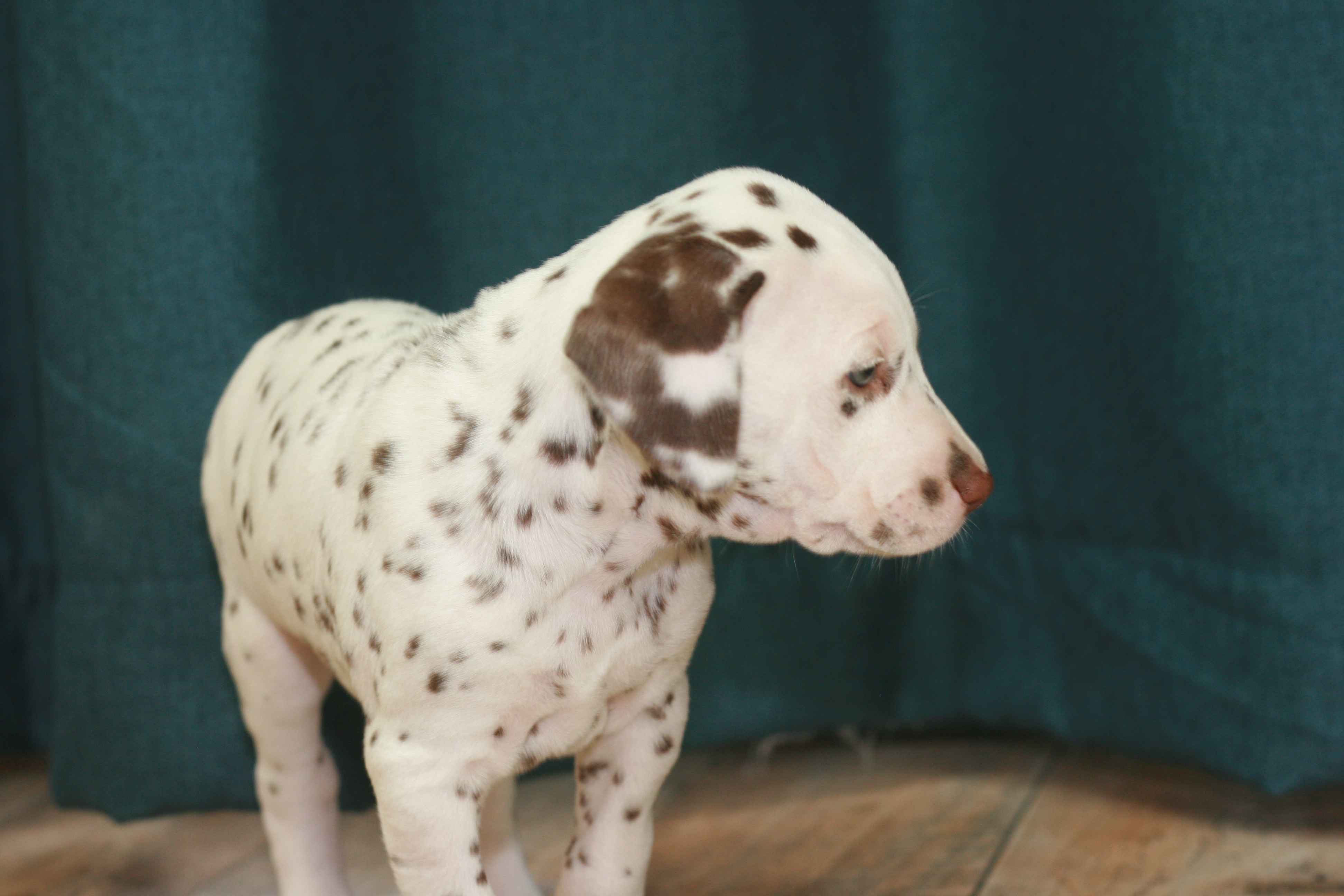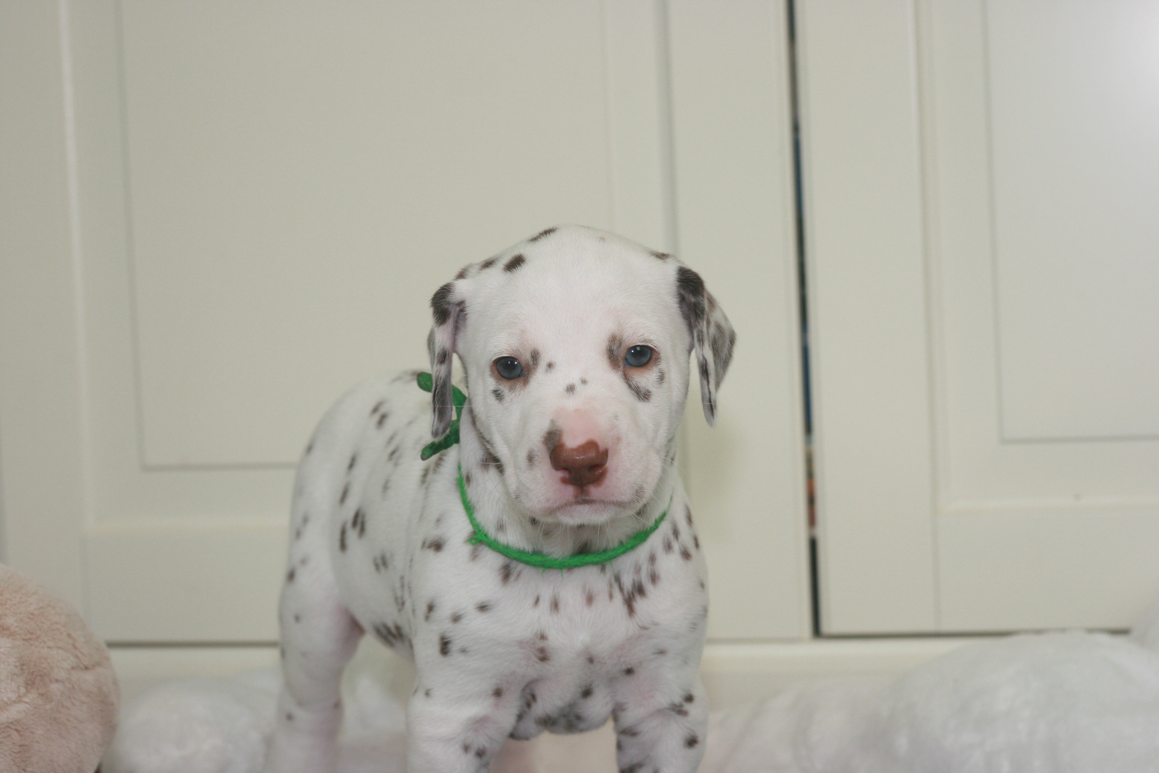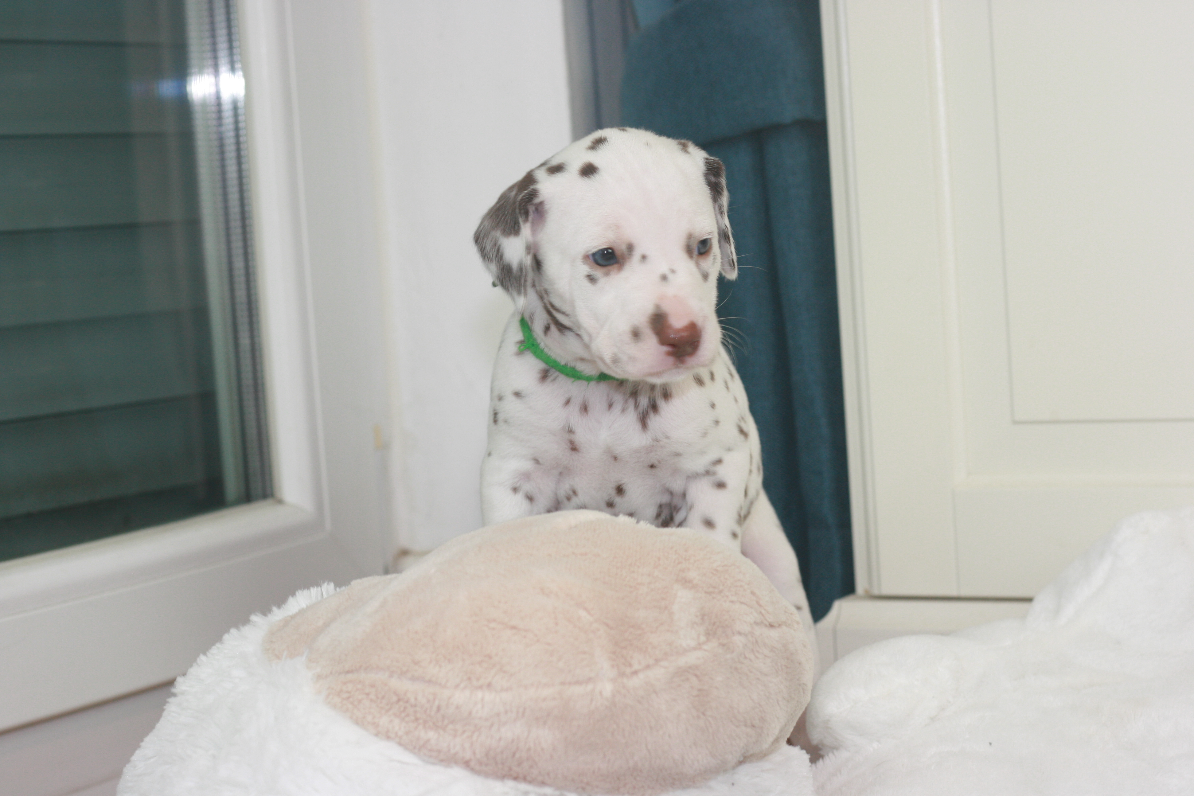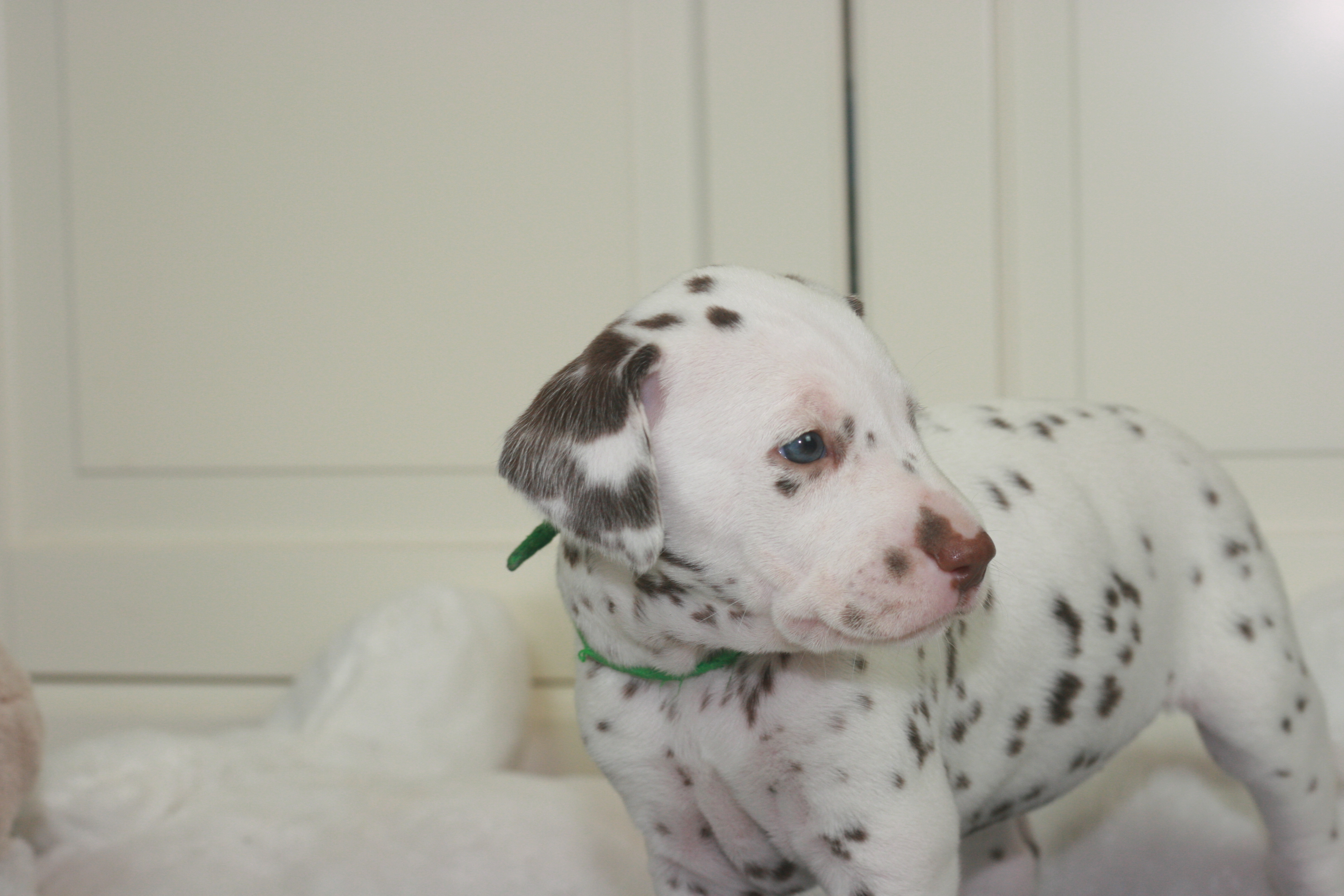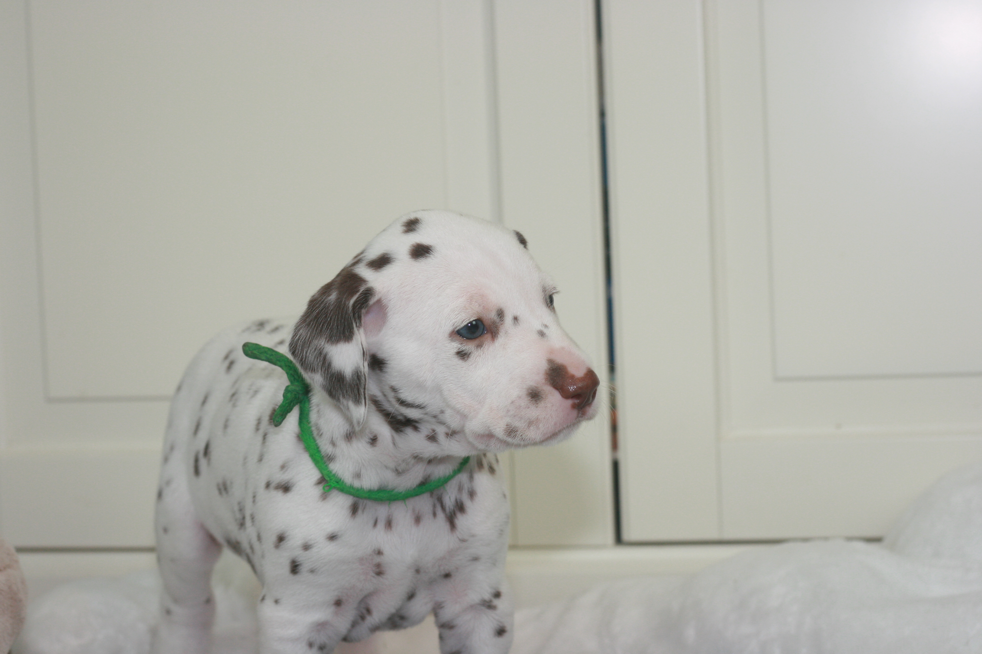 Fräulein Grün ist die Vierte aus unserem D-Wurf, die das Licht der Welt erblickt hat. Sie hatte ein Geburtsgewicht von 330g. Sie wird eine Weiss-Braune Hündin. Mittlerweile hat sie bereits ein Gewicht von 460g.