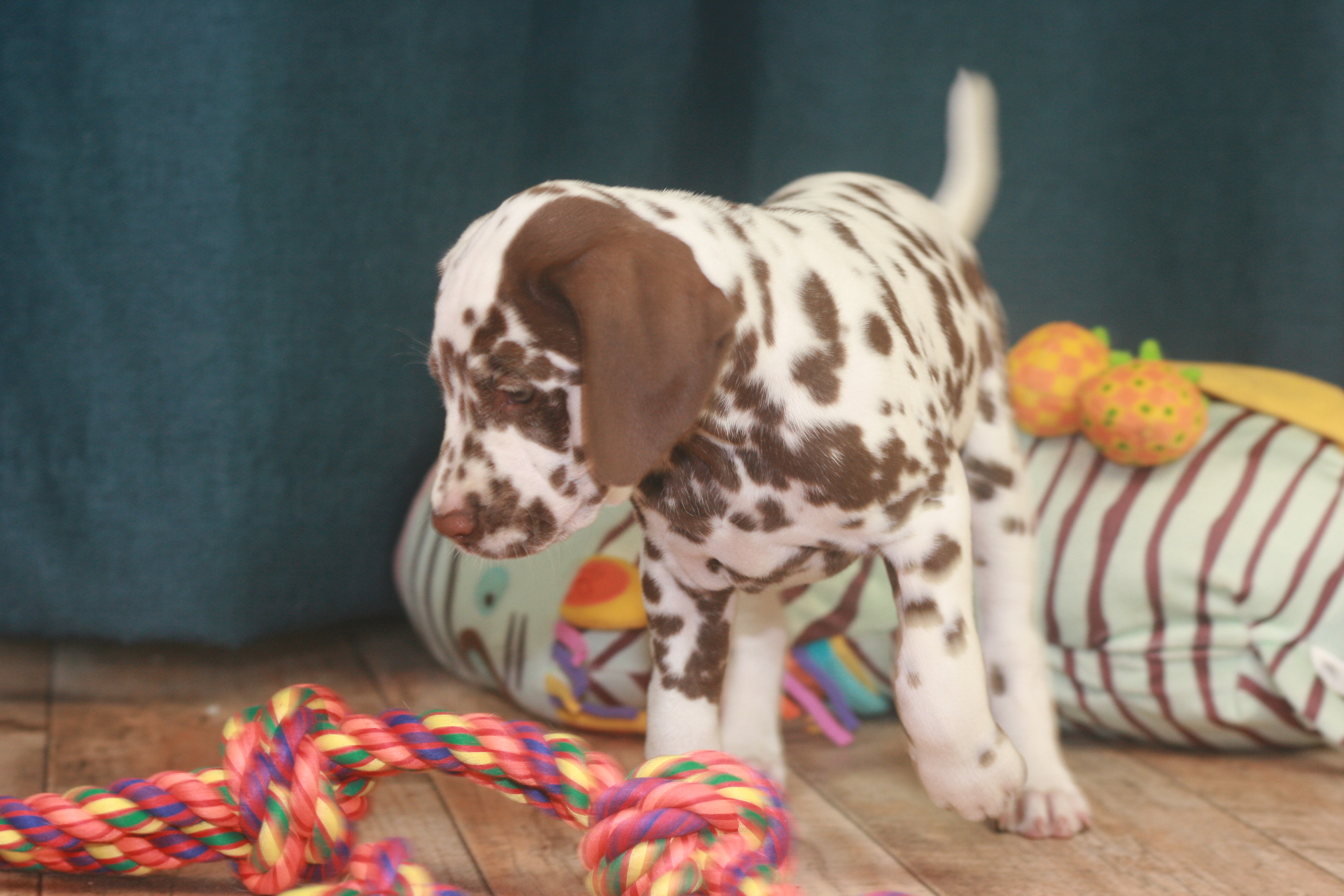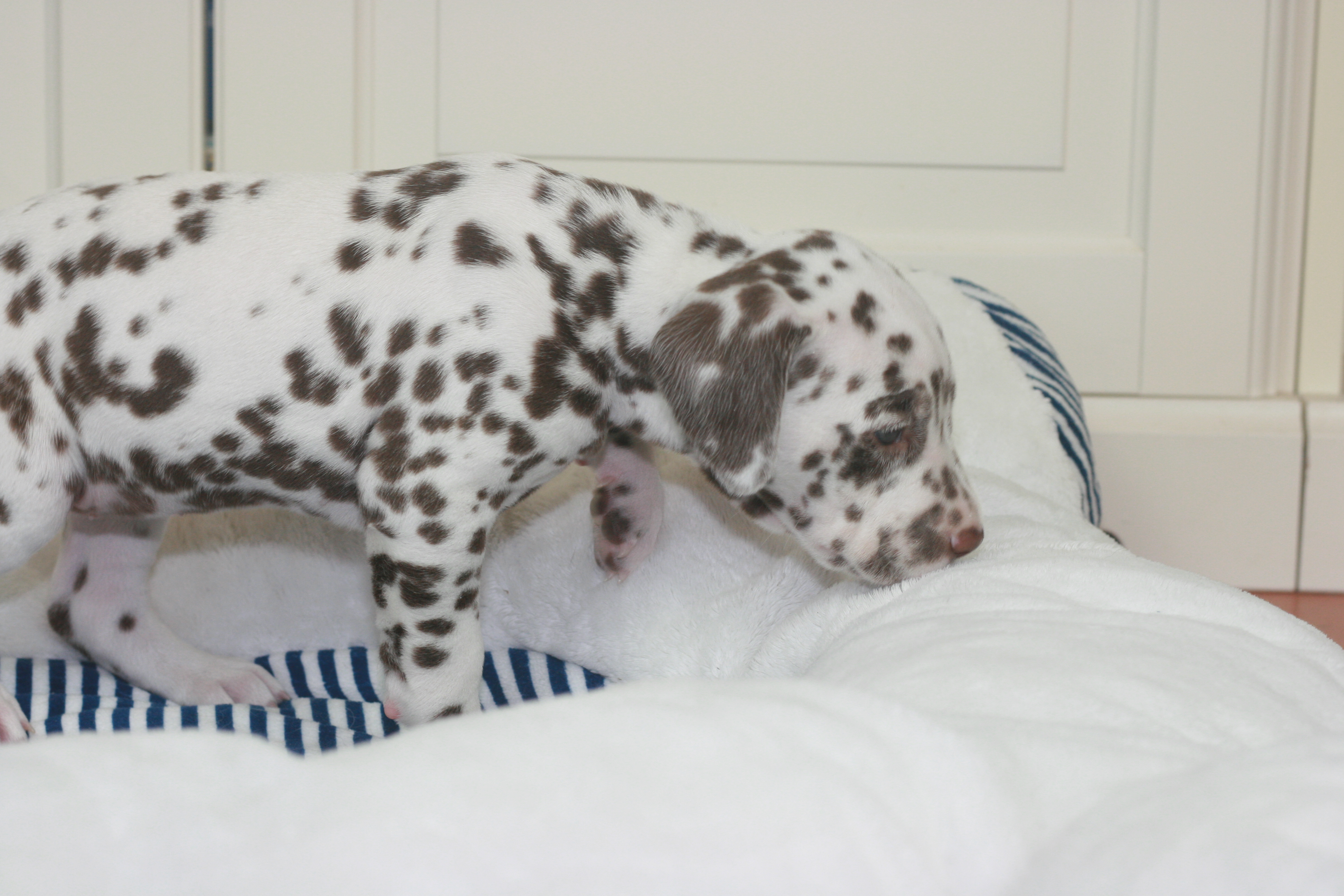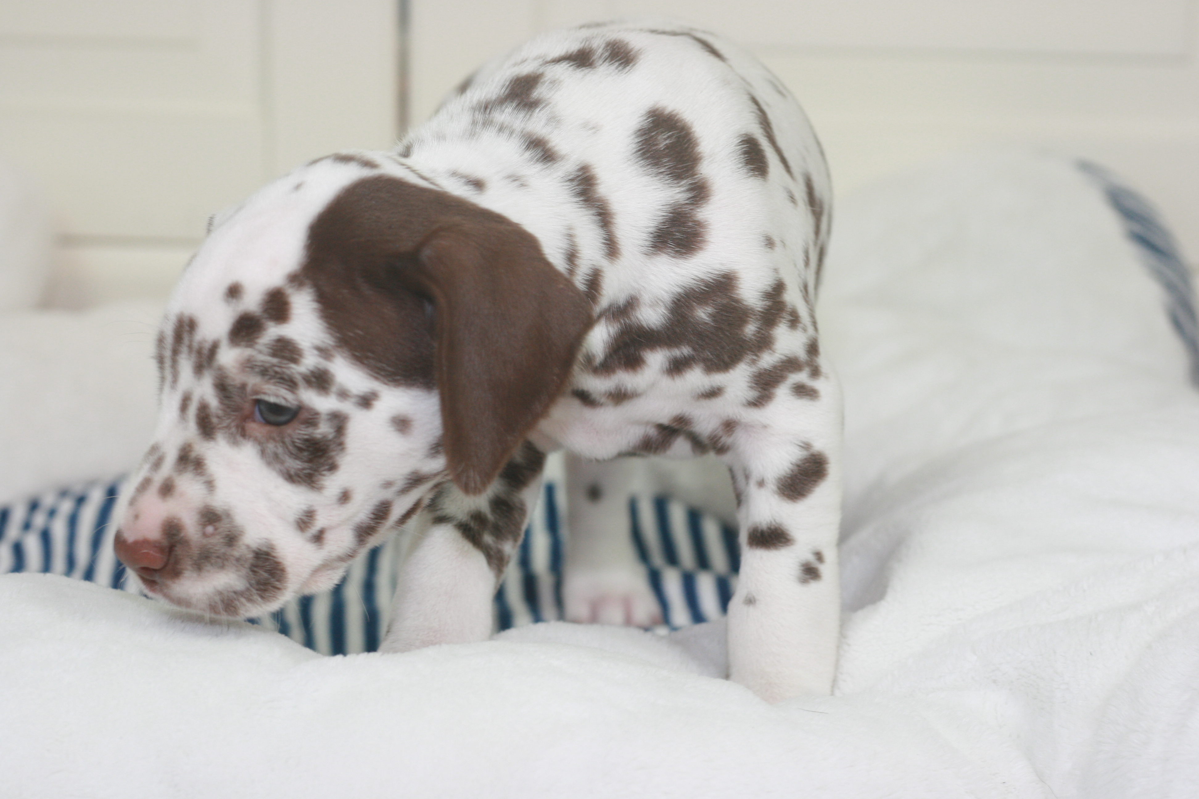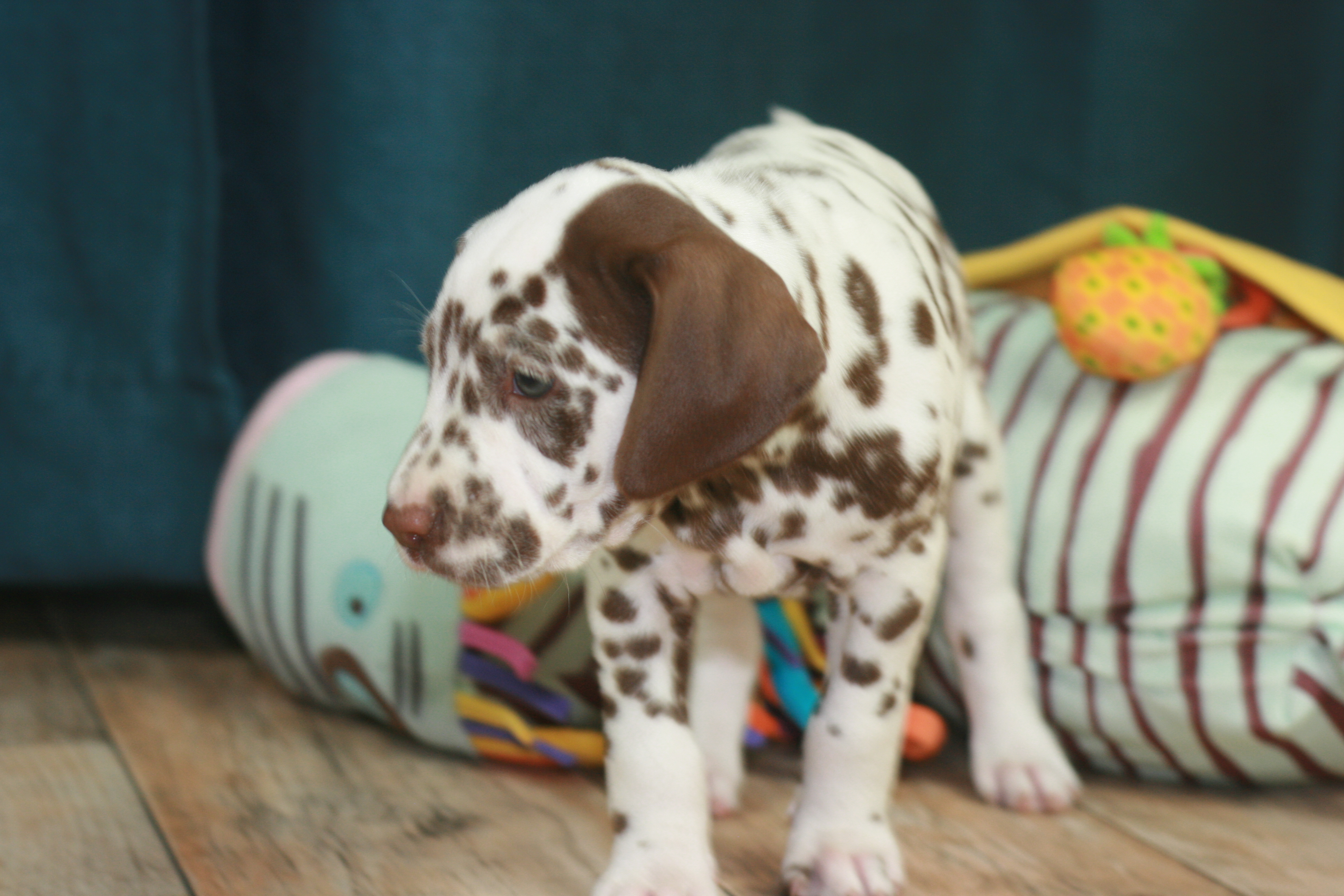 Fräulein Hellblau ist die Neunte und letzte aus unserem D-Wurf, die das Licht der Welt erblickt hat. Sie hatte ein Geburtsgewicht von 347g. Sie wird eine Weiss-Braune Hündin. Mittlerweile hat sie bereits ein Gewicht von 450g.