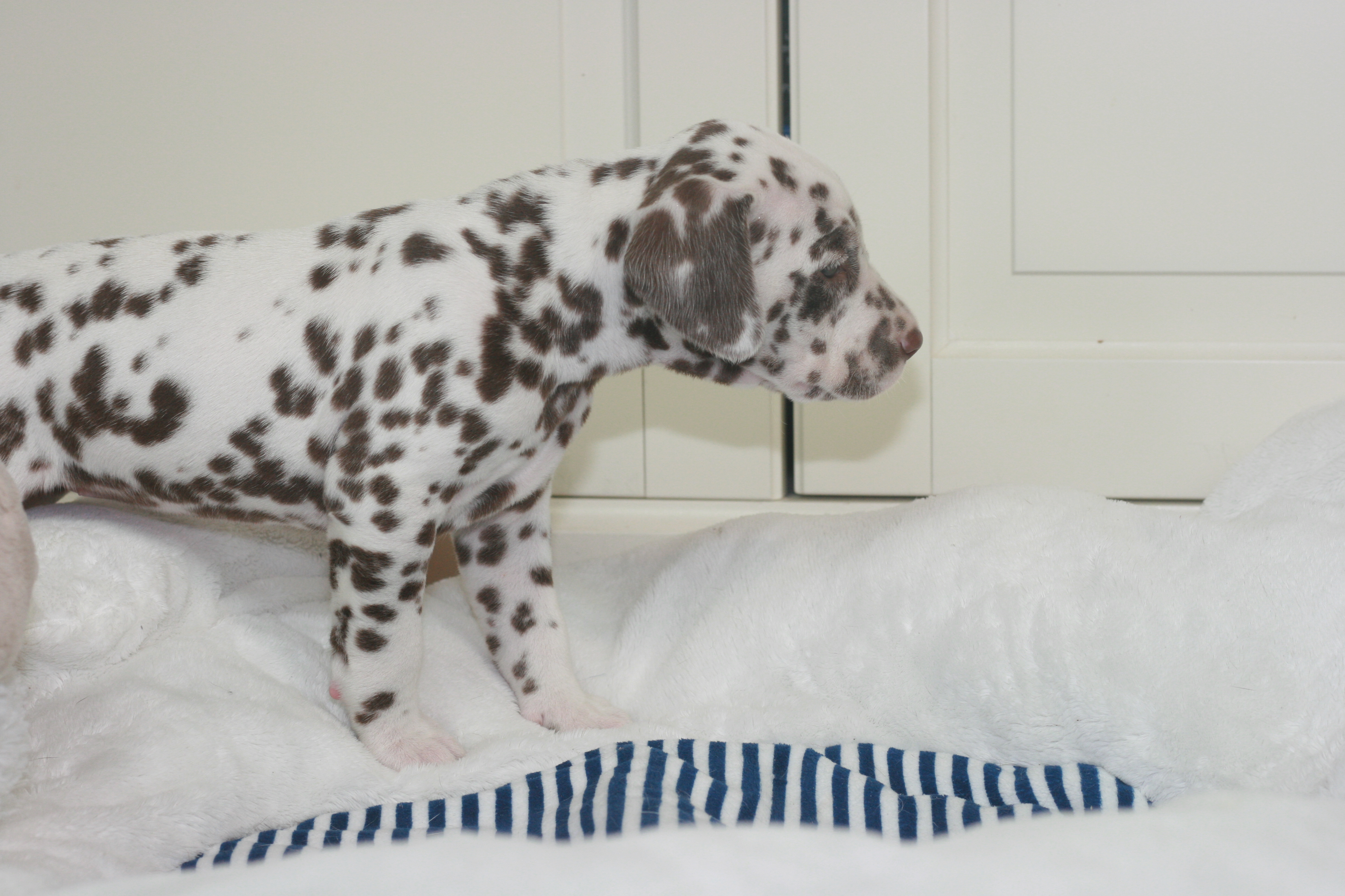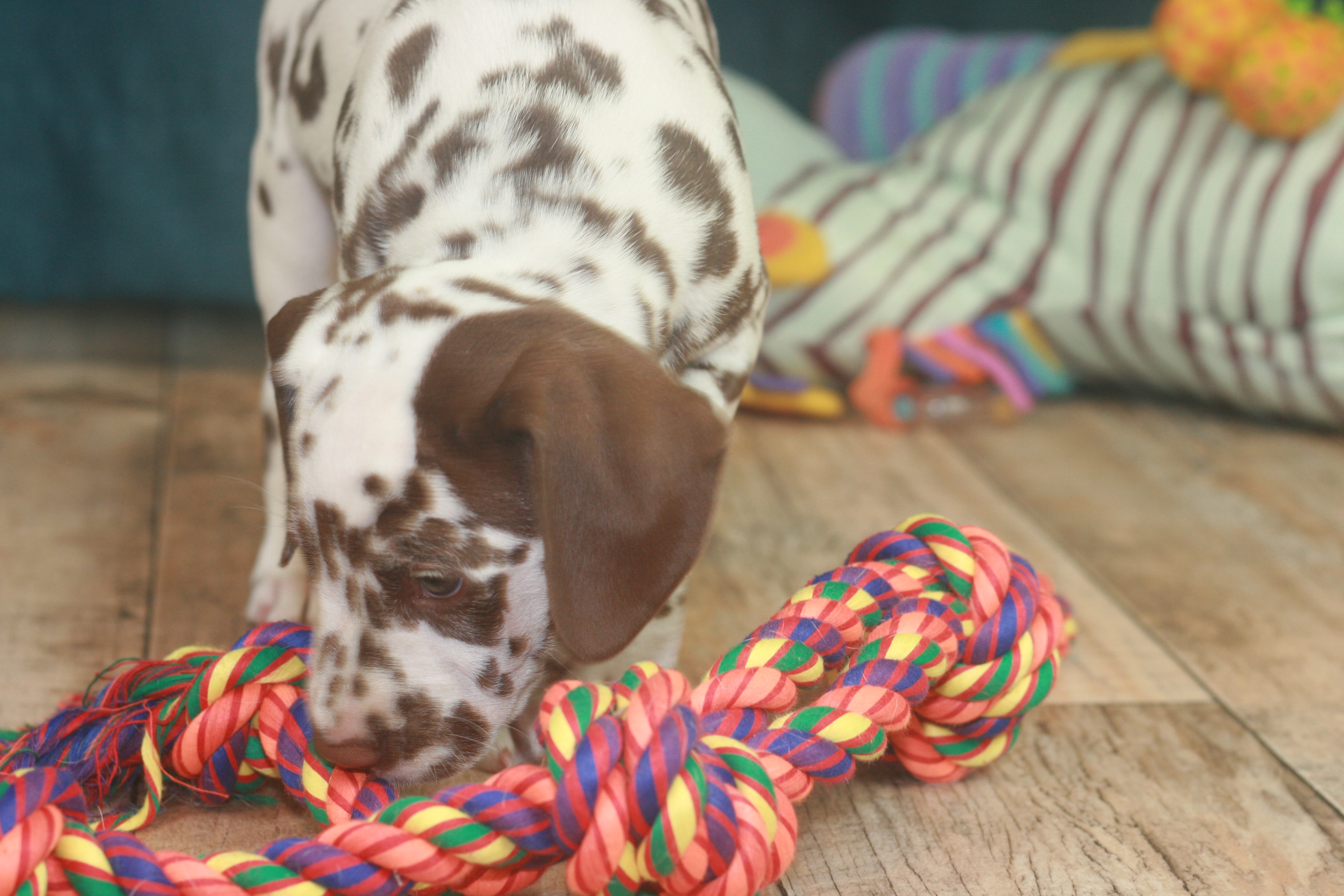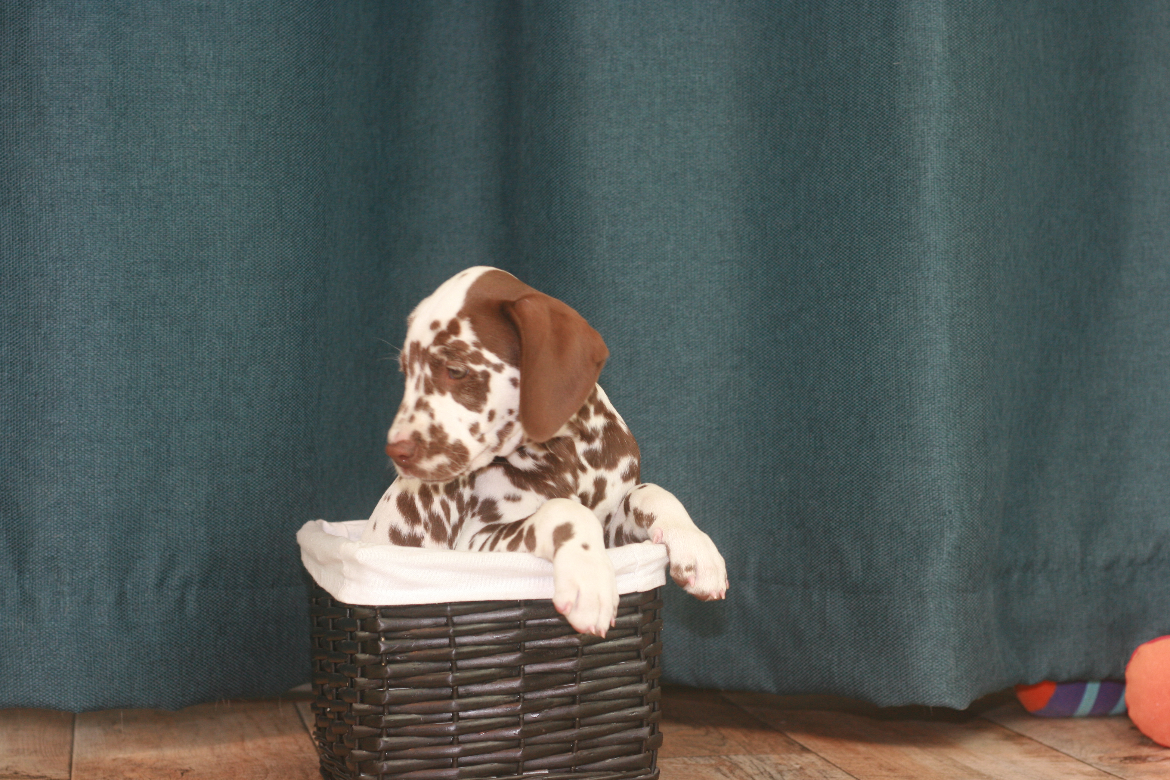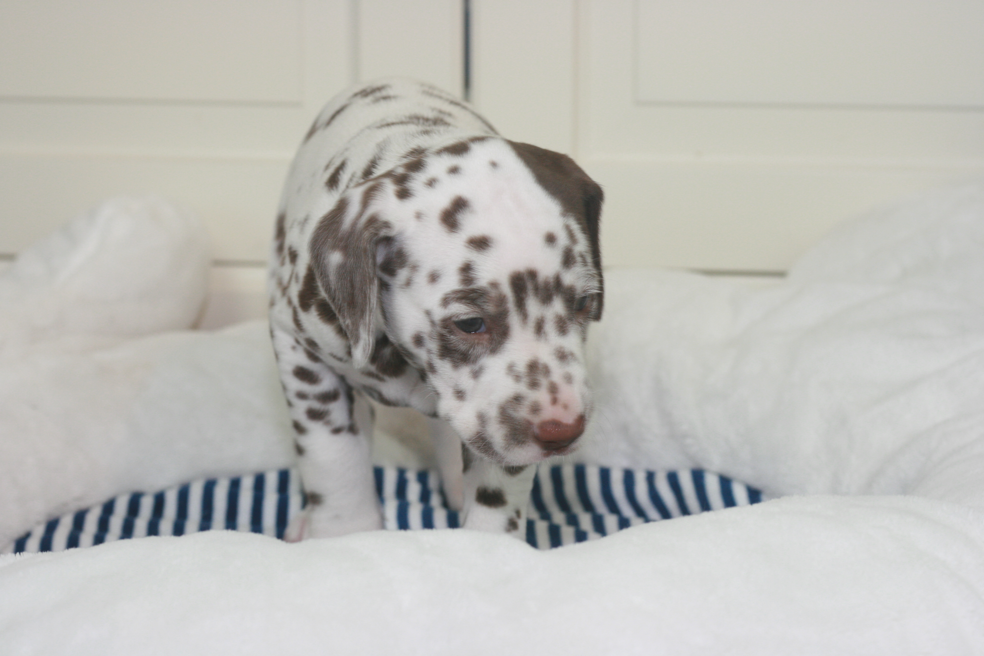 Fräulein Hellblau ist die Neunte und letzte aus unserem D-Wurf, die das Licht der Welt erblickt hat. Sie hatte ein Geburtsgewicht von 347g. Sie wird eine Weiss-Braune Hündin. Mittlerweile hat sie bereits ein Gewicht von 450g.