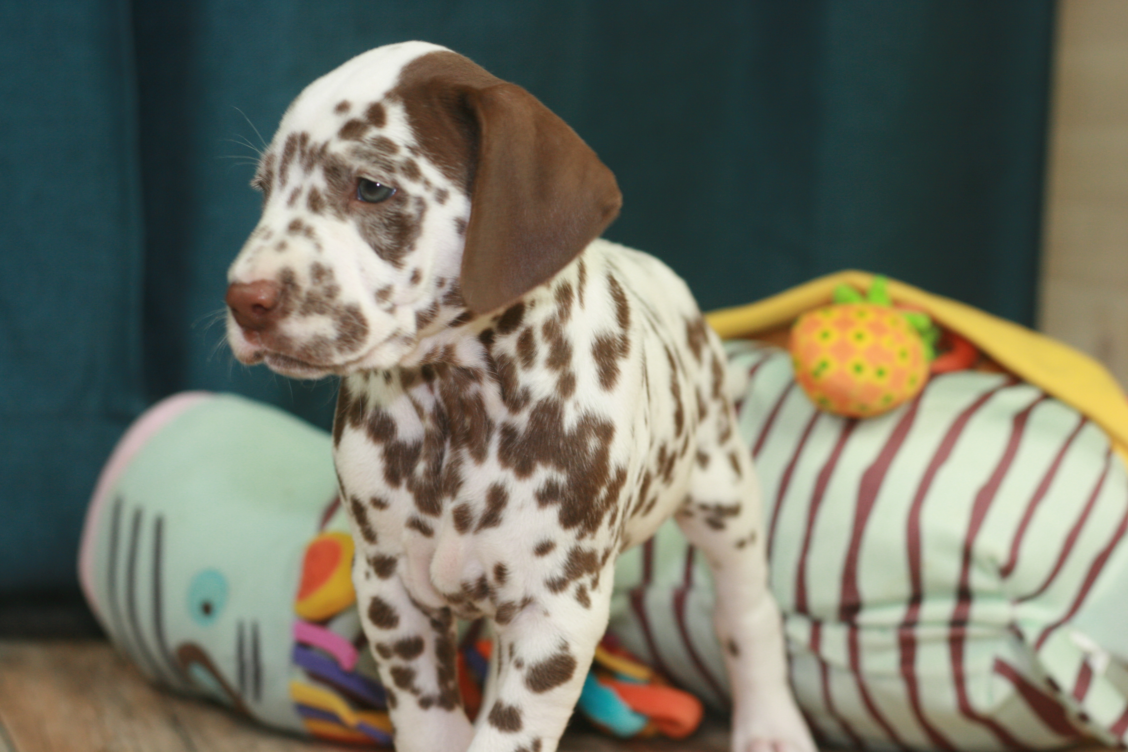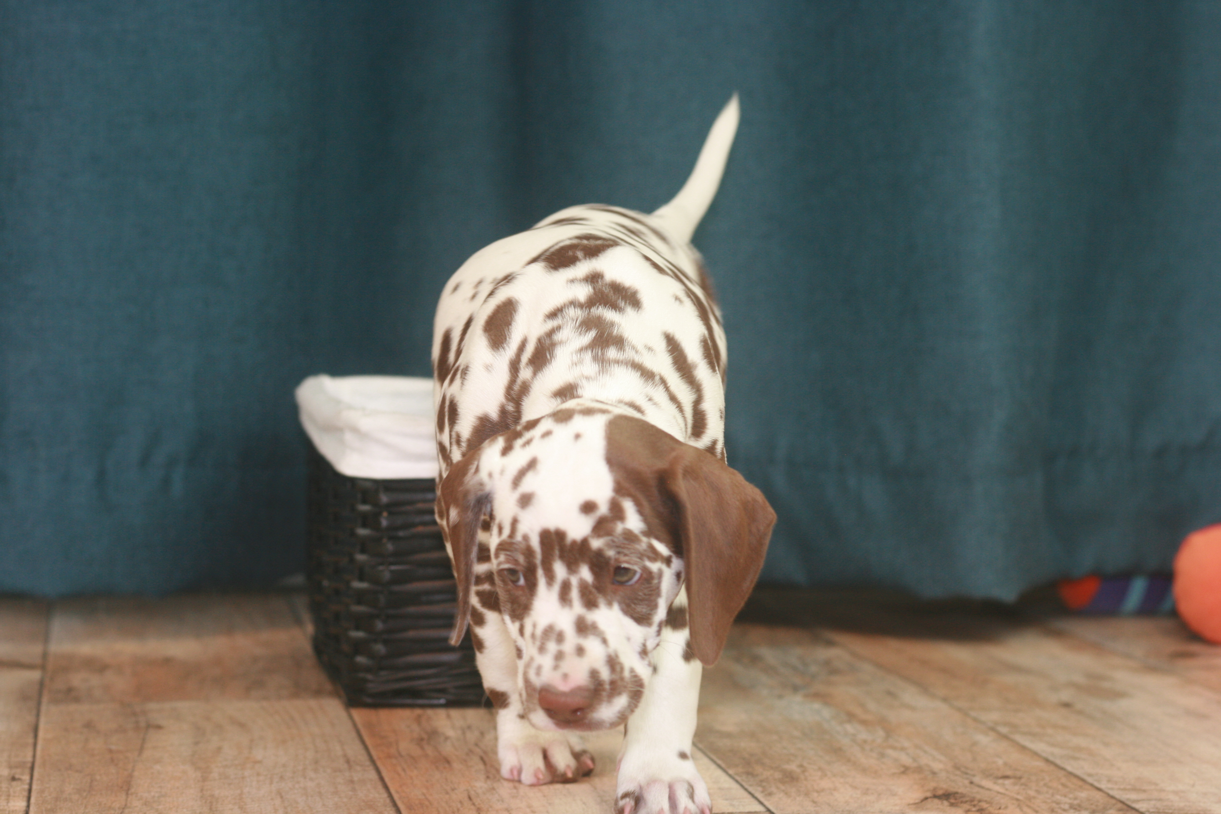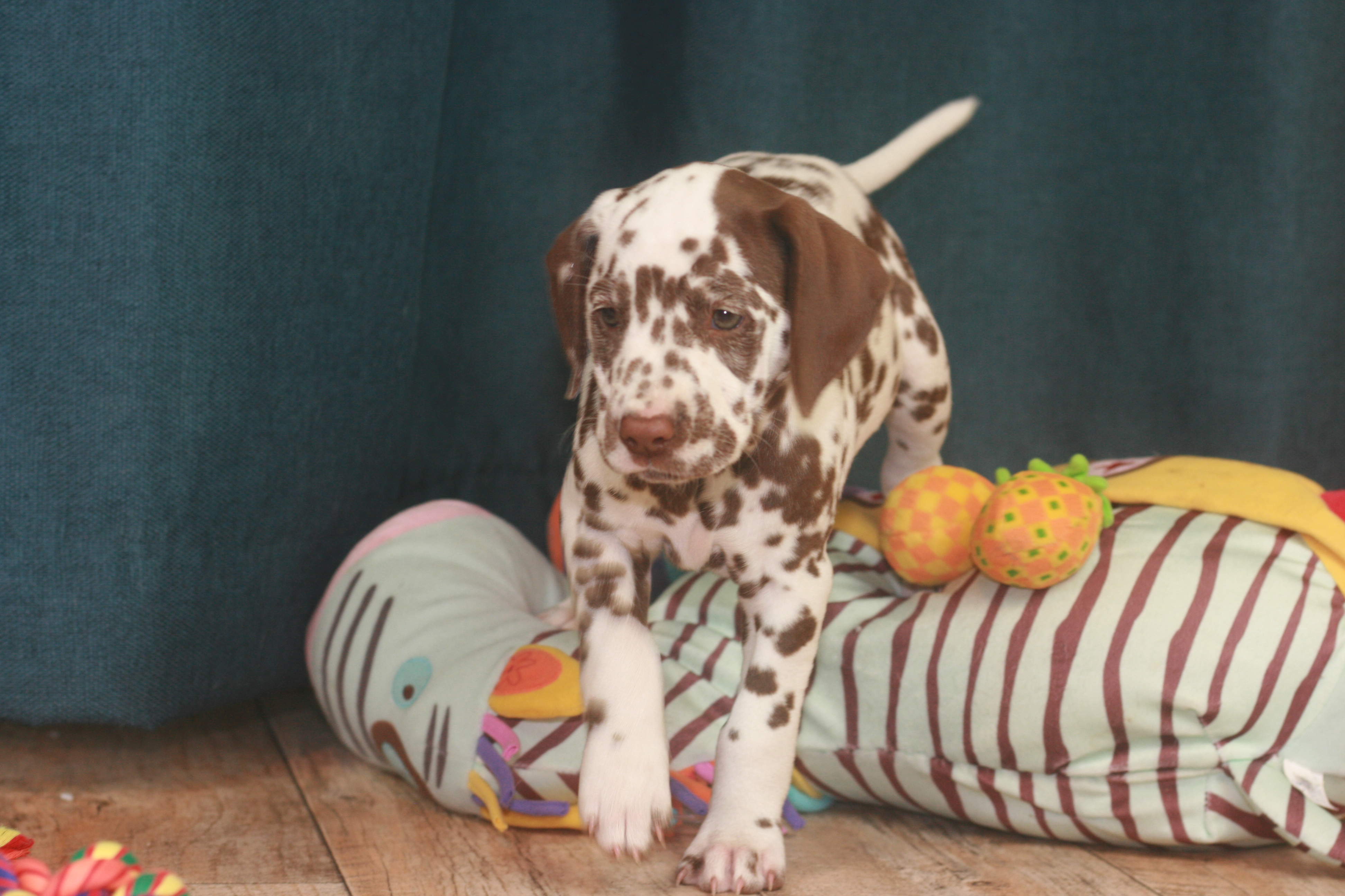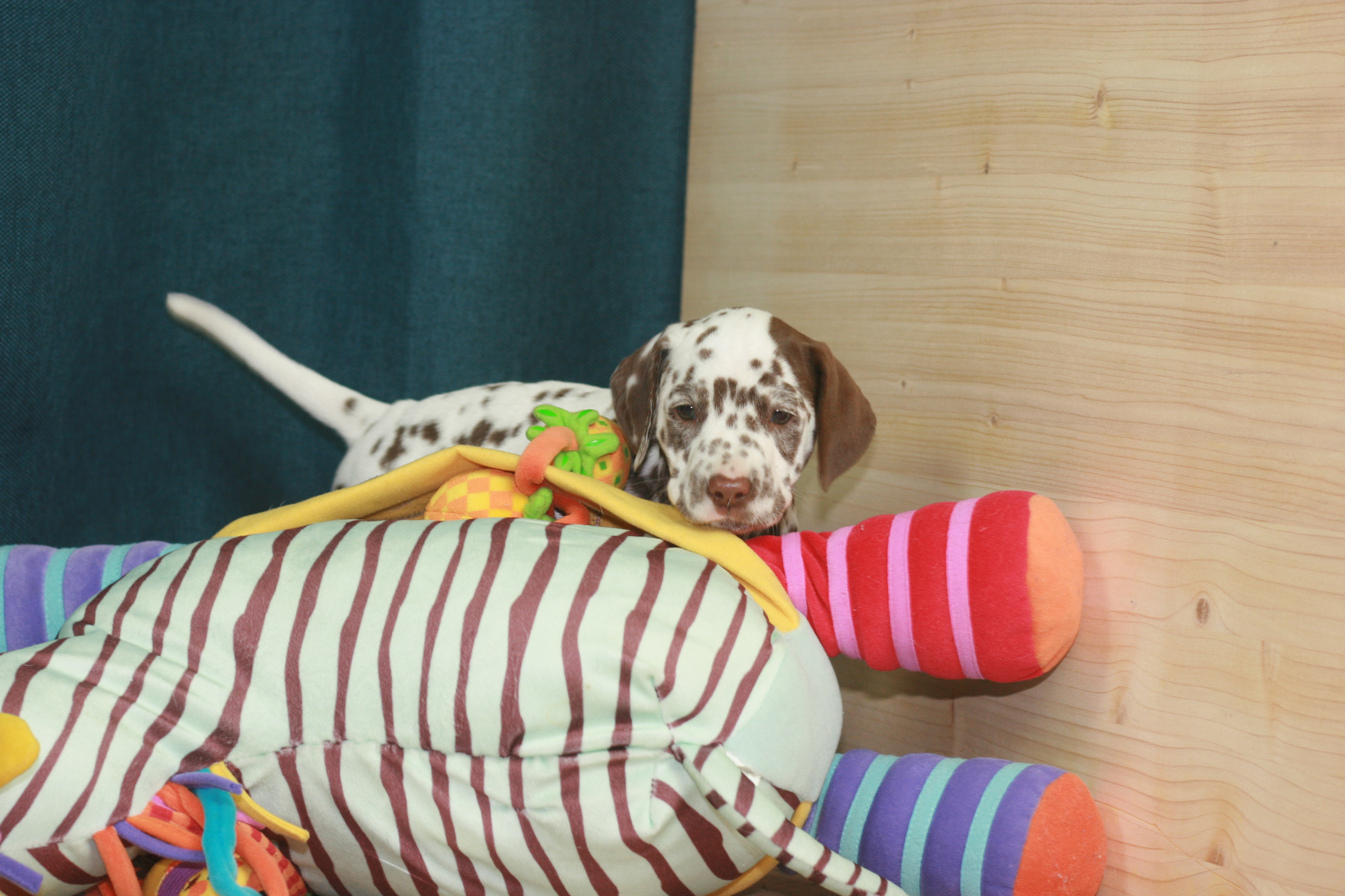 Fräulein Hellblau ist die Neunte und letzte aus unserem D-Wurf, die das Licht der Welt erblickt hat. Sie hatte ein Geburtsgewicht von 347g. Sie wird eine Weiss-Braune Hündin. Mittlerweile hat sie bereits ein Gewicht von 450g.