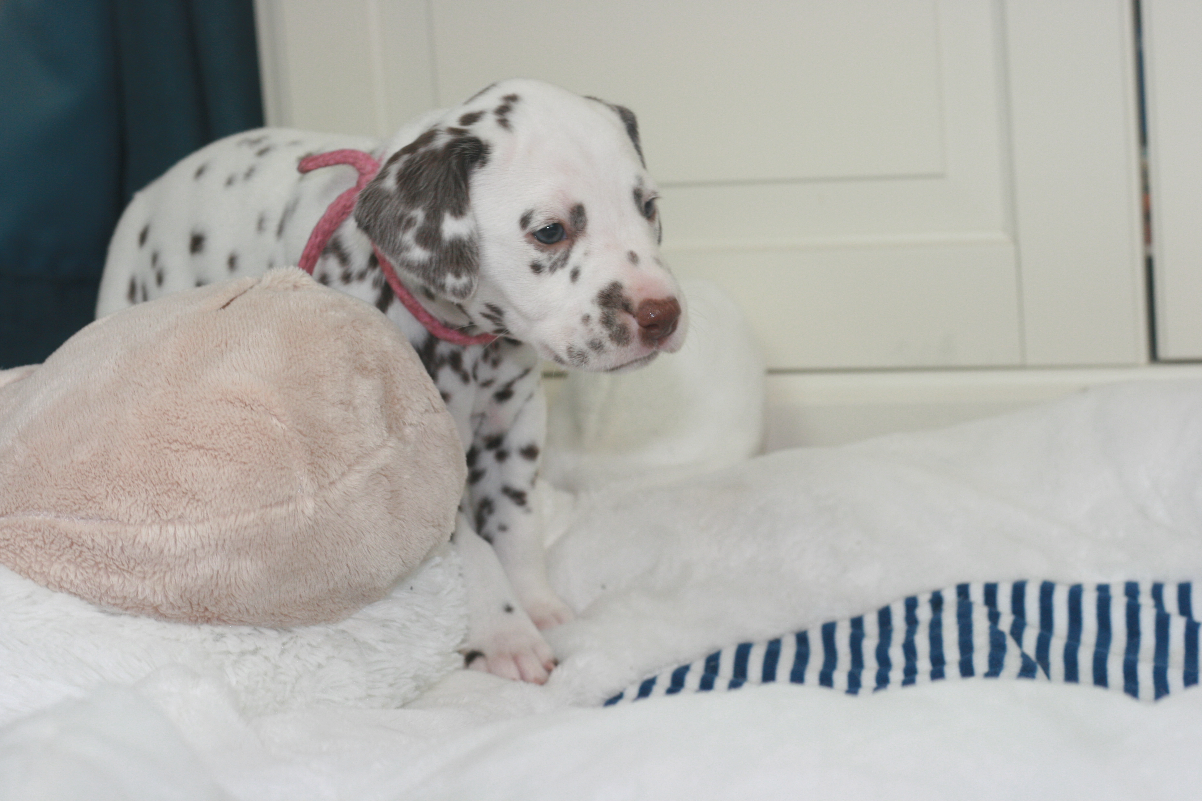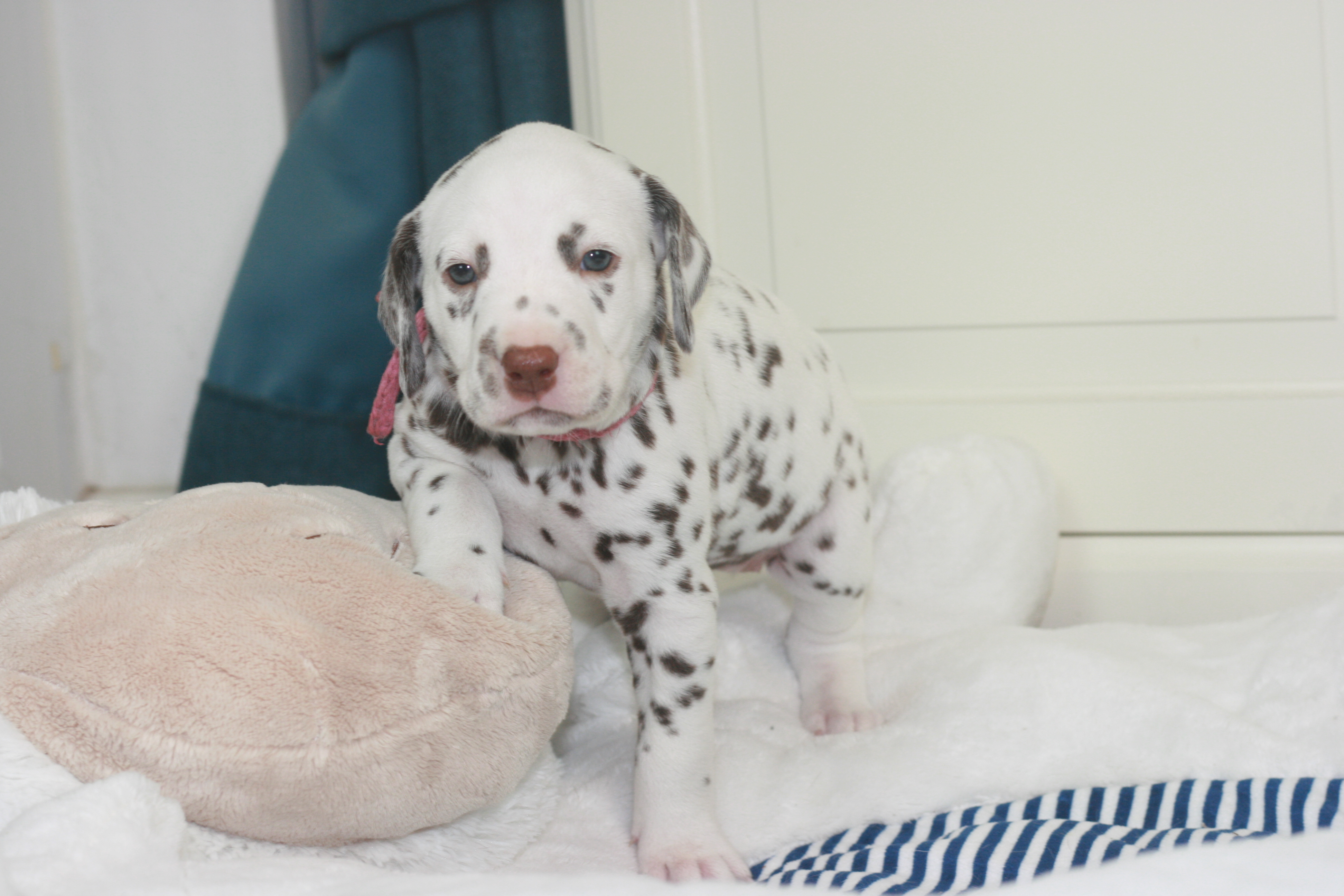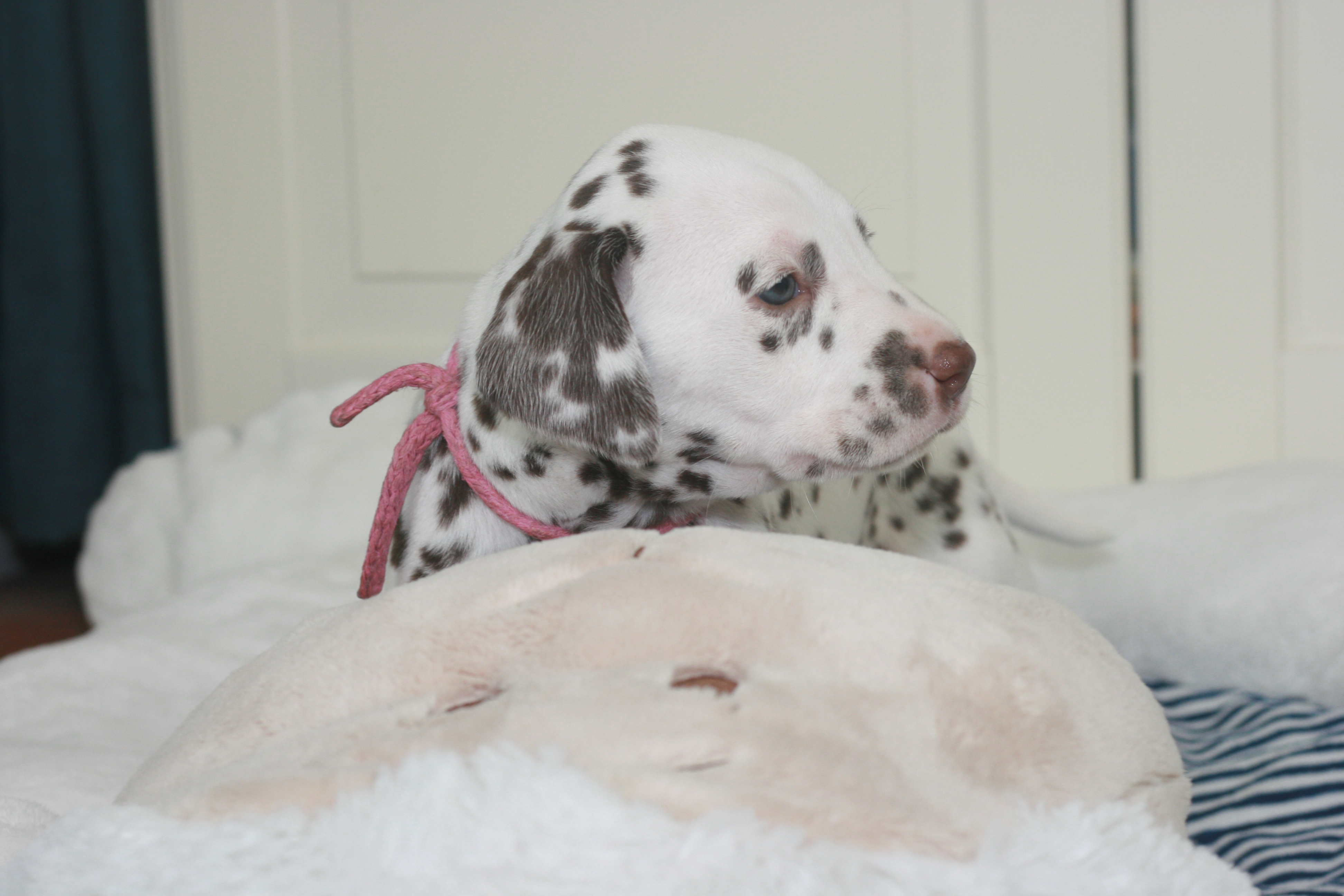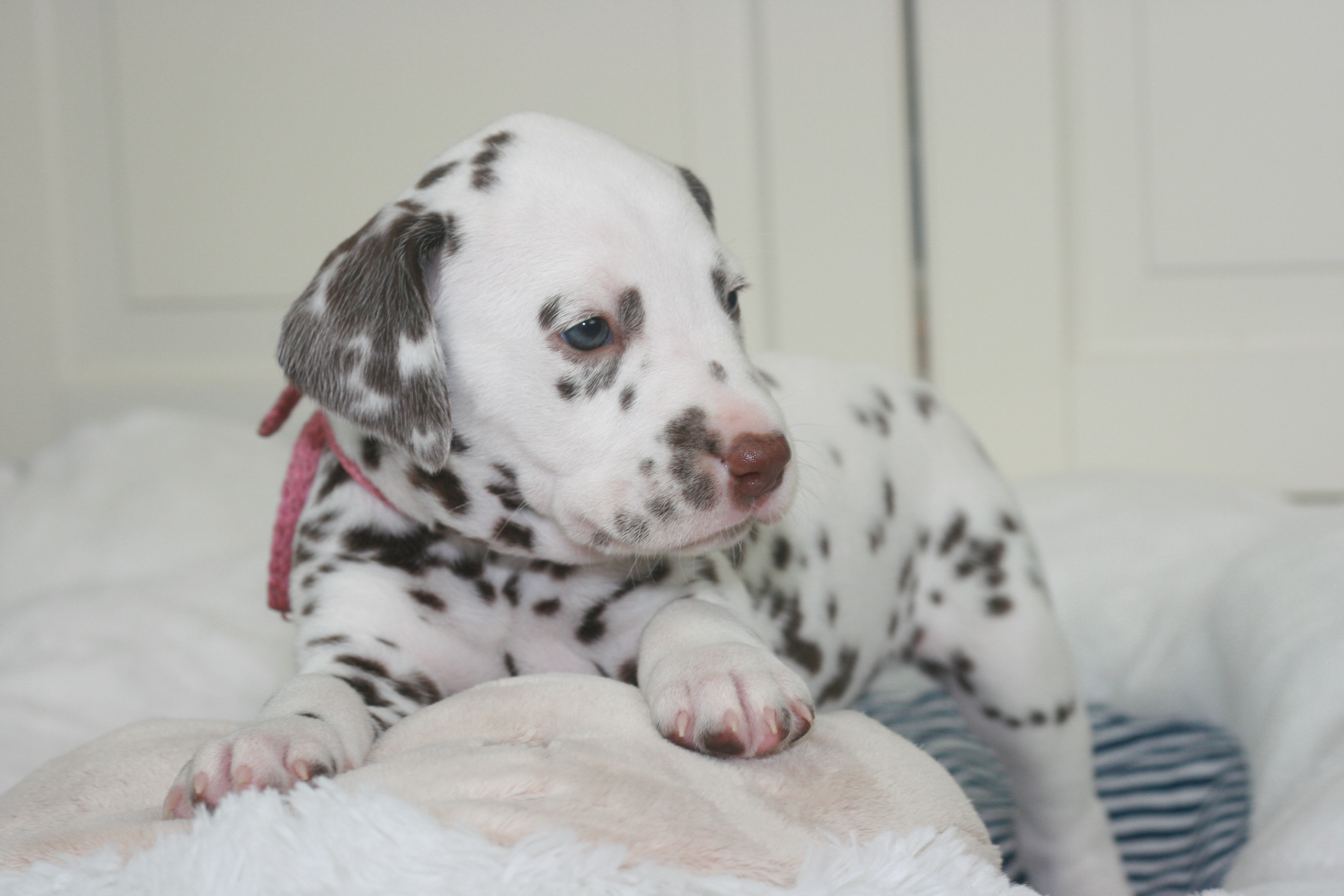Fräulein Pink ist die Fünfte aus unserem D-Wurf, die das Licht der Welt erblickt hat. Sie hatte ein Geburtsgewicht von 340g. Sie wird eine Weiss-Braune Hündin. Mittlerweile hat sie bereits ein Gewicht von 470g.