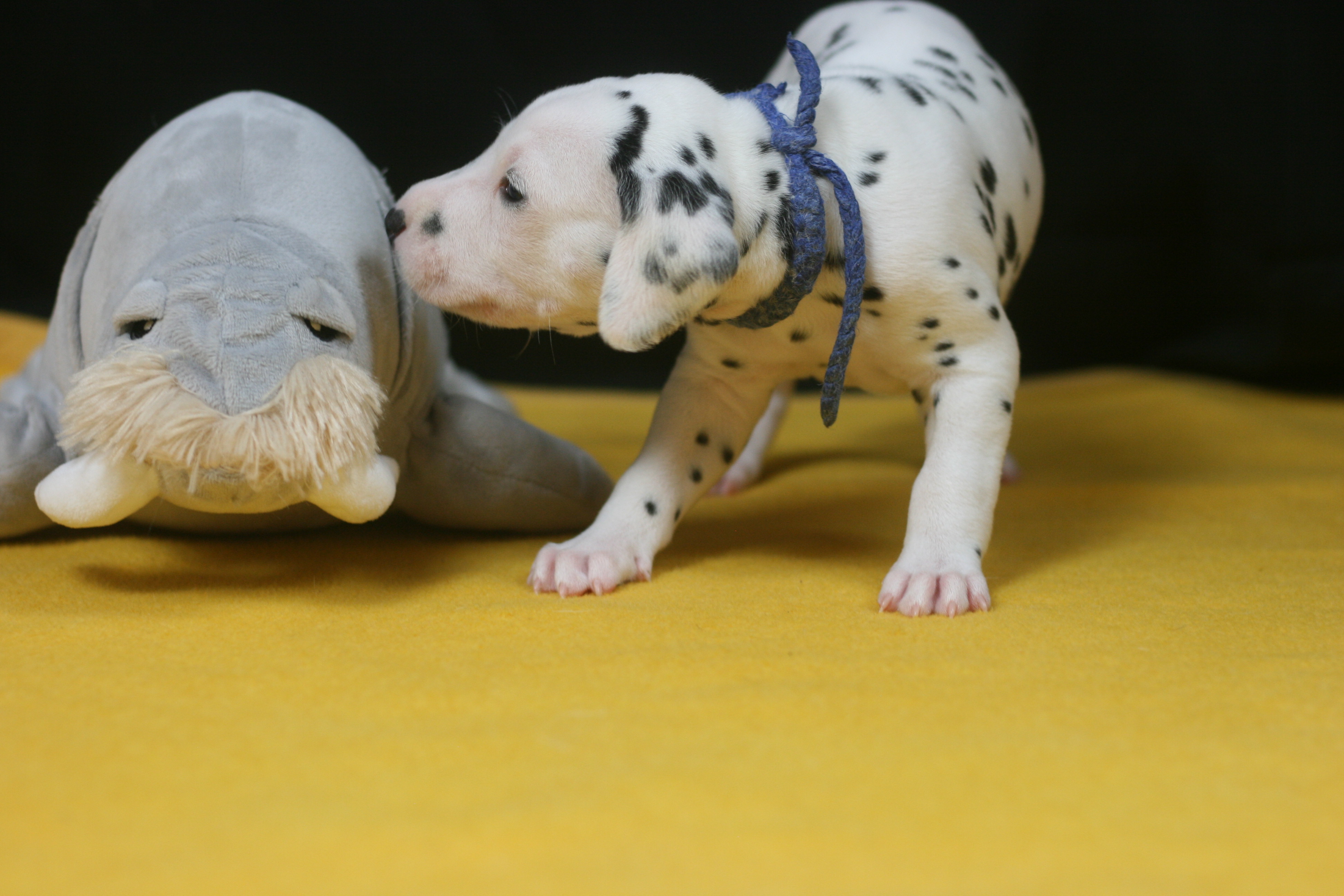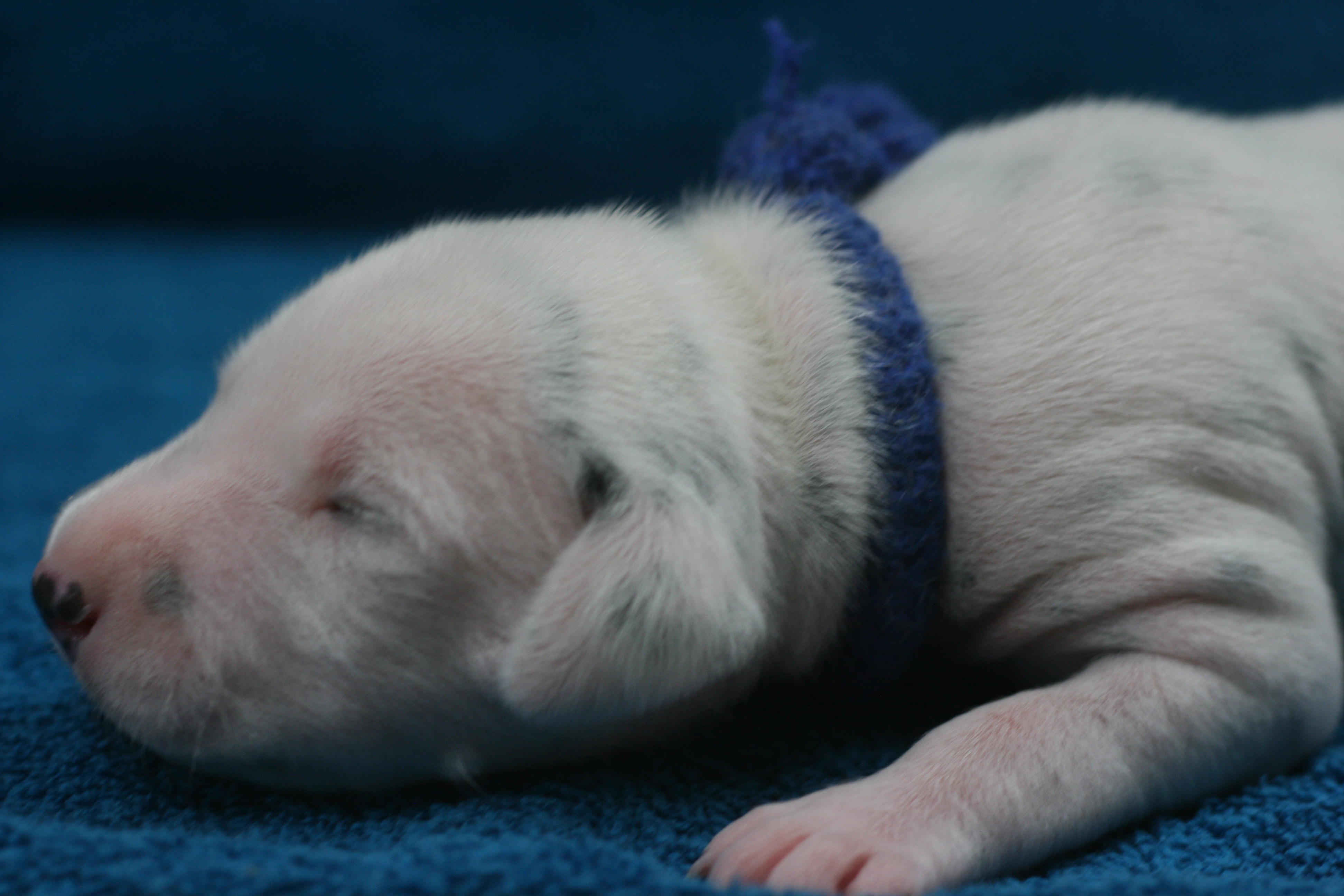 Herr Dunkelblau ist der Siebte aus unserem C-Wurf, der das Licht der Welt erblickt hat. Er hatte ein Geburtsgewicht von 295g. Er wird ein Weiss-Schwarzer Rüde. Unser Kleiner war heute der 1. und Einzige, der beim Shooting der 2. Woche auf allen Vieren gestanden hat. 🙂
